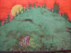 Men mest fascinerande är utsmyckningen av Solna centrums T-banestation. Ett totalkonstverk med glesbygdstema signerat Karl-Olov Björk och Anders Åberg. Gestaltningen är lätt naivistisk och småproggig i lysande rött och skogsmullegrönt, det är som att stiga rakt in i ett väldigt, tecknat uppslag av Kamratposten från mitten av 70-talet.