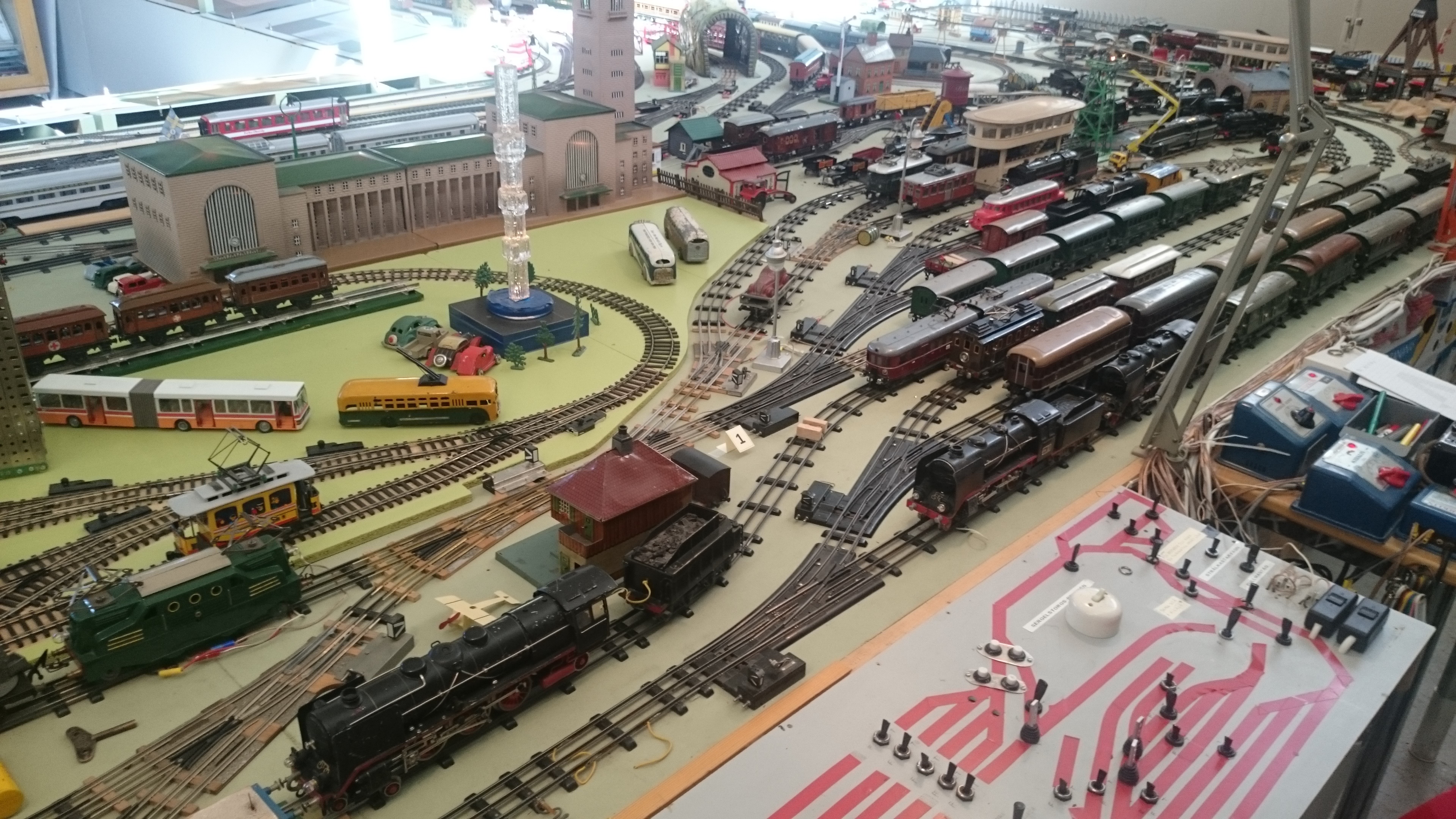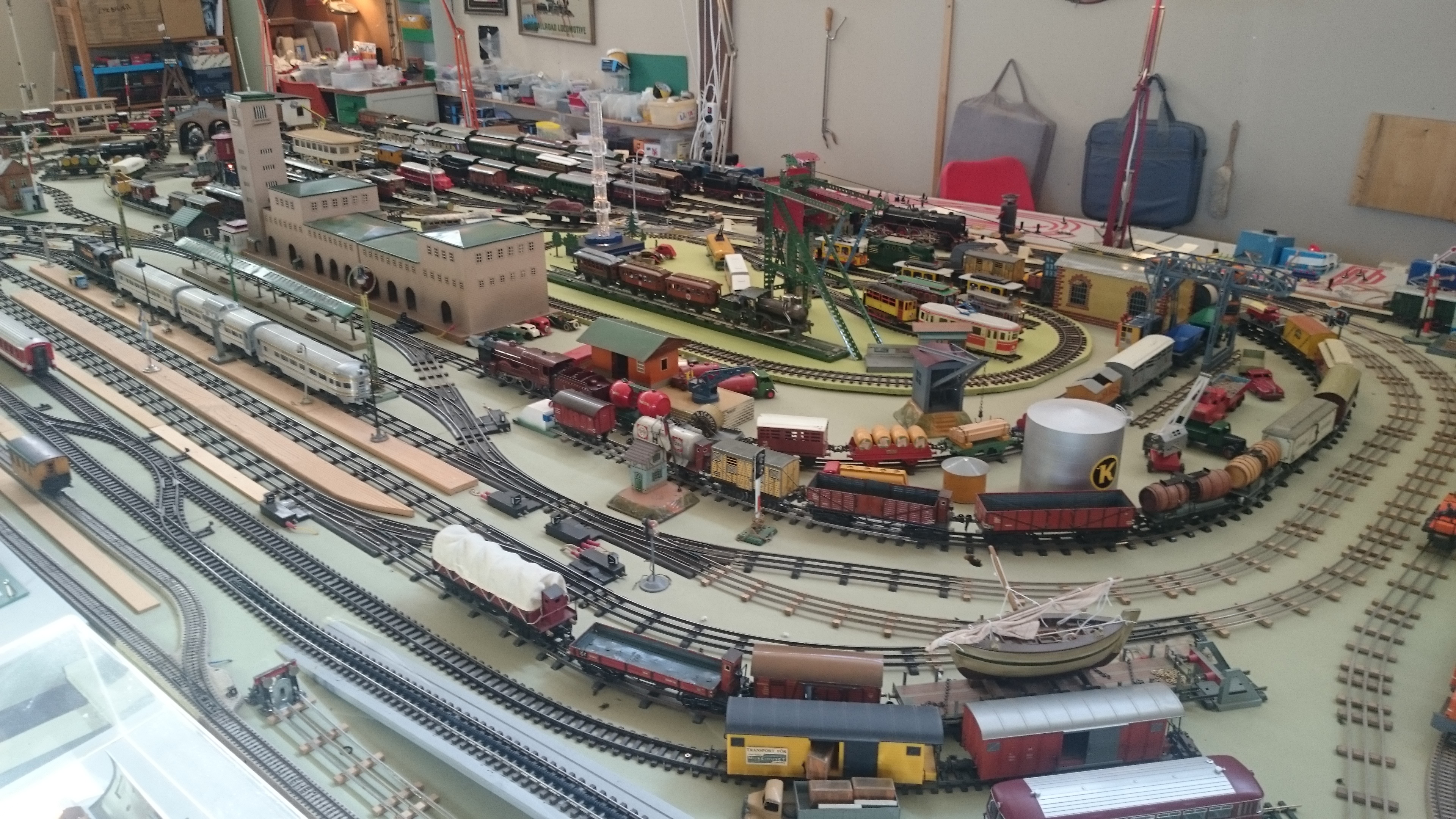 Vad kan en upptäcksresande inte hitta i byggnader längs Göta kanal? Som denna modelljärnväg de luxe med anrikt Märklin. Här finns bland annat ett komplett lasarettåg för sårade tyska soldater, tillverkat under första världskriget (det står med sitt lok och tre vagnar parkerat strax bortom det stora, bruna stationshuset). Och kolla oljecisternen som bär Koppartrans logotyp! Konnässörer av gamla bensinbolag förstår vilka känslor sånt väcker.