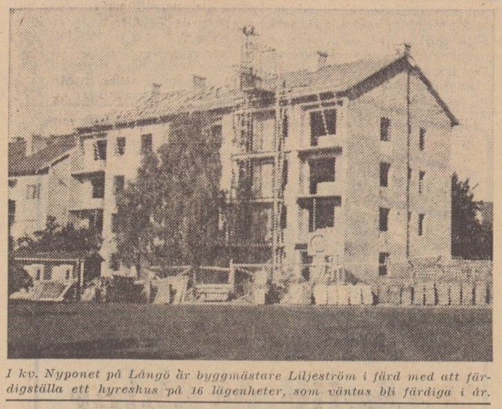 Byggmästare Liljeström bygger ut. Hyreshuset vid Långö torg (klippet ovan) skulle två år senare få tillökning med ny fastighet vägg i vägg. Ur Blekinge Läns Tidning den 11 oktober 1962.