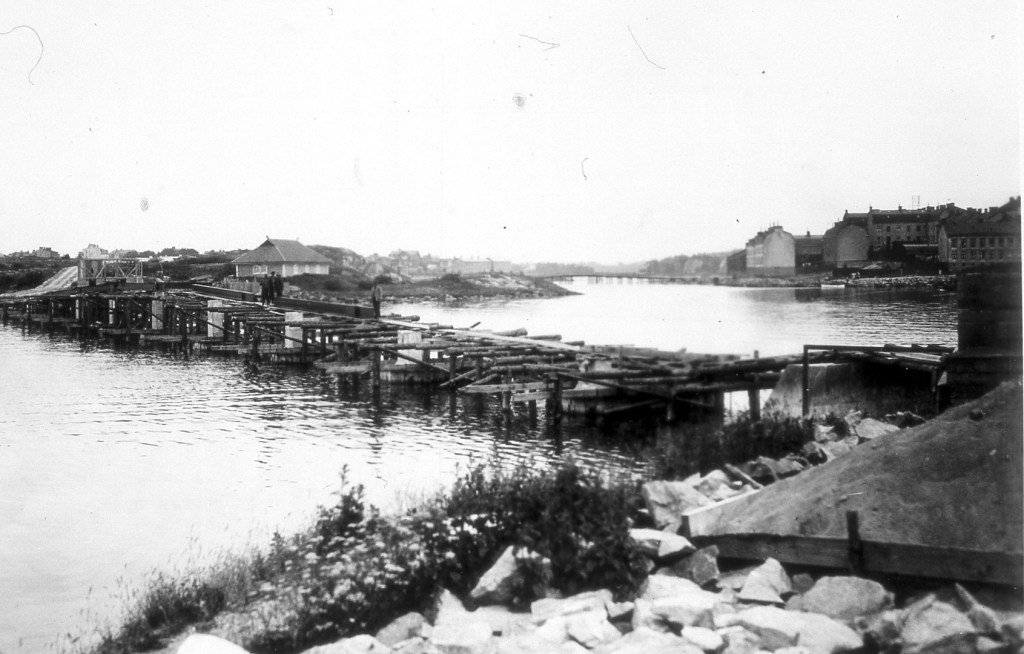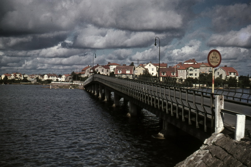 Nya – södra – Långöbron under byggnation 1929. I bakgrunden syns den första träbron anno 1905.Nya Långöbron – som vi idag kallar den gamla – mellan Långövägen och Borgmästarekajen invigdes på hösten 1929 av O W Andersson (1888-1964), rektor på Centrala Verkstadsskolan i Karlskrona och profilerad socialdemokratisk lokalpolitiker. Tack vare denna bro kunde sedan Karlskrona Stads Spårvägar starta busstrafik mellan Långö och Trossö 1931. Kan vi anta att det är mor och dotter som spatserar här på Långövägen i slutet av 1930-talet?Södra Långöbron kring 1950. ”Ej möte Buss – bil hästfordon” förkunnar vägskylten. Det fanns ju bara ett körfält. Här har vi bron på ett fotografi som sannolikt är taget under 1960-talet, men definitivt före högertrafikomläggningen den 3 september 1967 eftersom vänstertrafik fortfarande uppenbart råder. Två skyltar har som synes tillkommit på vänstra sidan brofästet. Den översta förkunnar att det är omkörningsförbud på bron – trots att det bara finns ett körfält! Den understa låter förstå att trafikerande fordon får väga max 5 ton.