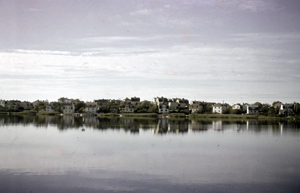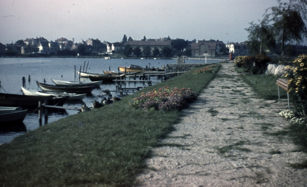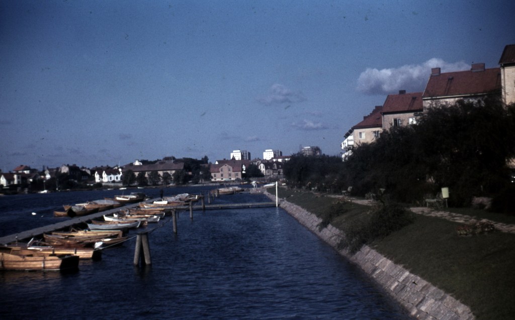 Detta fotografi är taget i 1950-talets början från Pantarholmen av Paavo Johannes Lindquist (1893-1965). Den långa byggnaden i mitten av bilden på Långösidan är bostadshuset ”Ladan” (sedermera rivet). Bredvid till vänster ser vi ”Amerikanska villan”, som då var målad i vitt. Och bakom på Muraregatan skymtar den höga byggnaden som rymde Långö Specerier och brukade kallas ”Trappa upp, trappa ner”.En annan bild som Paavo Johannes Lindquist tagit, där vi i bakgrunden ser hur det nya bostadsområdet på Norra Långö tornar upp sig över hustaken (höghuset på Arkitektgatan 8 är fortfarande under konstruktion). Lindquist var inte bara en hängiven amatörfotograf. Han var även stadsträdgårdsmästare i Karlskrona åren 1930-1955 och ansvarig för den stenlagda strandkanten med sin trevliga promenadväg på Pantarholmen. Den gode Paavo har också stått bakom kameran här. Bilden visar en bit av Östra Strandgatan anno 1954.