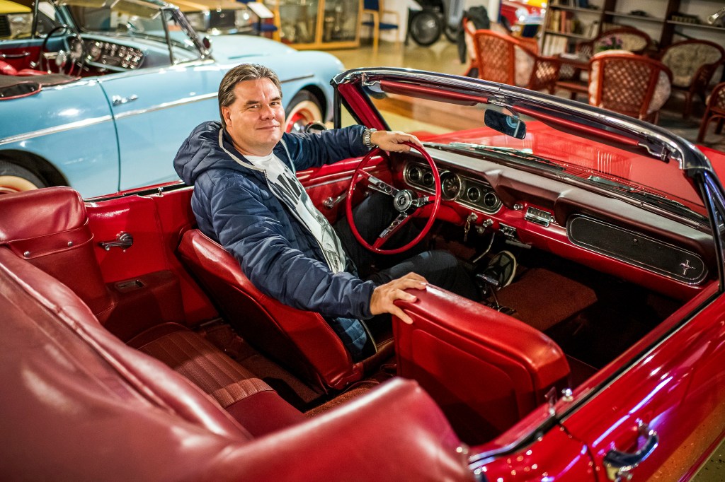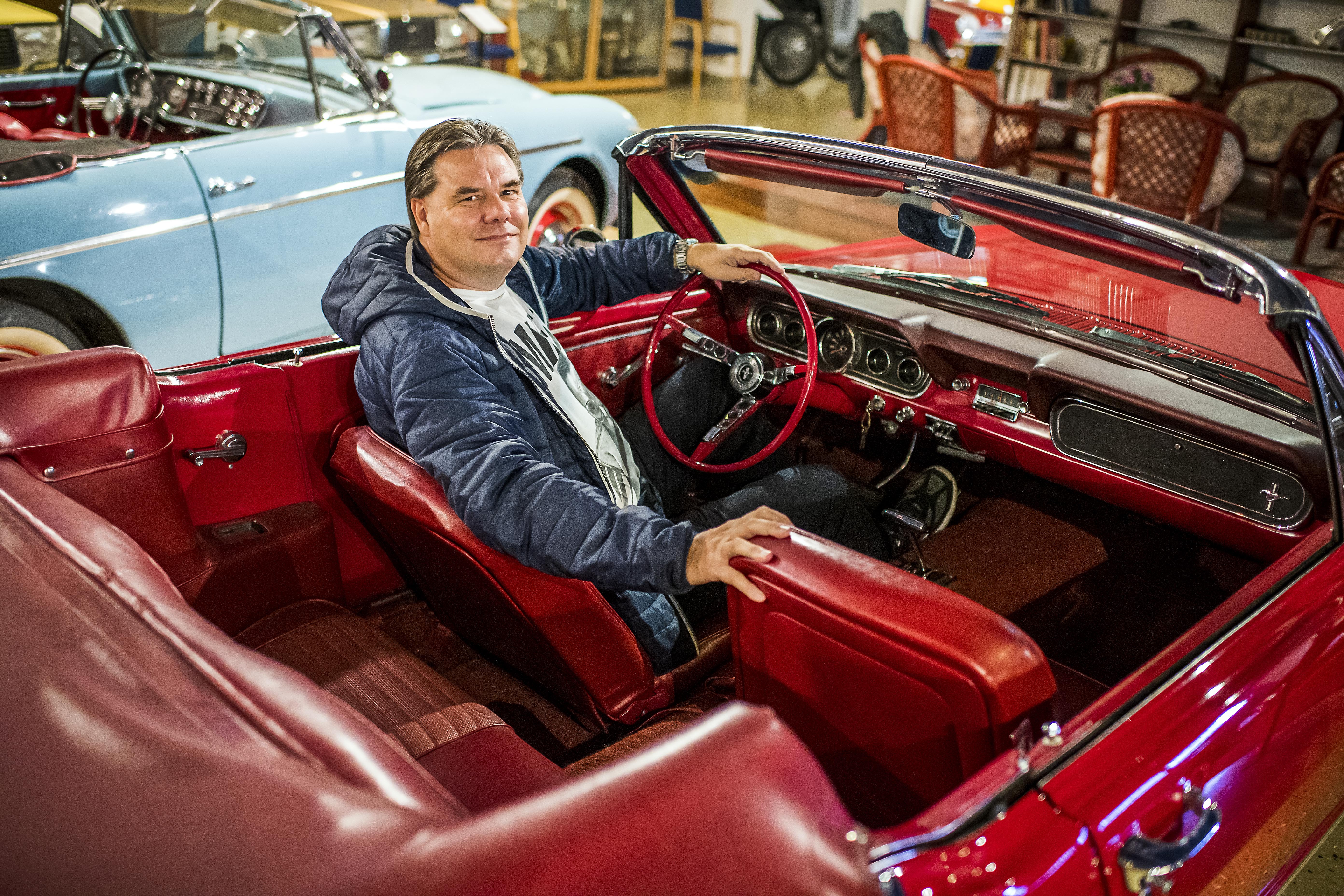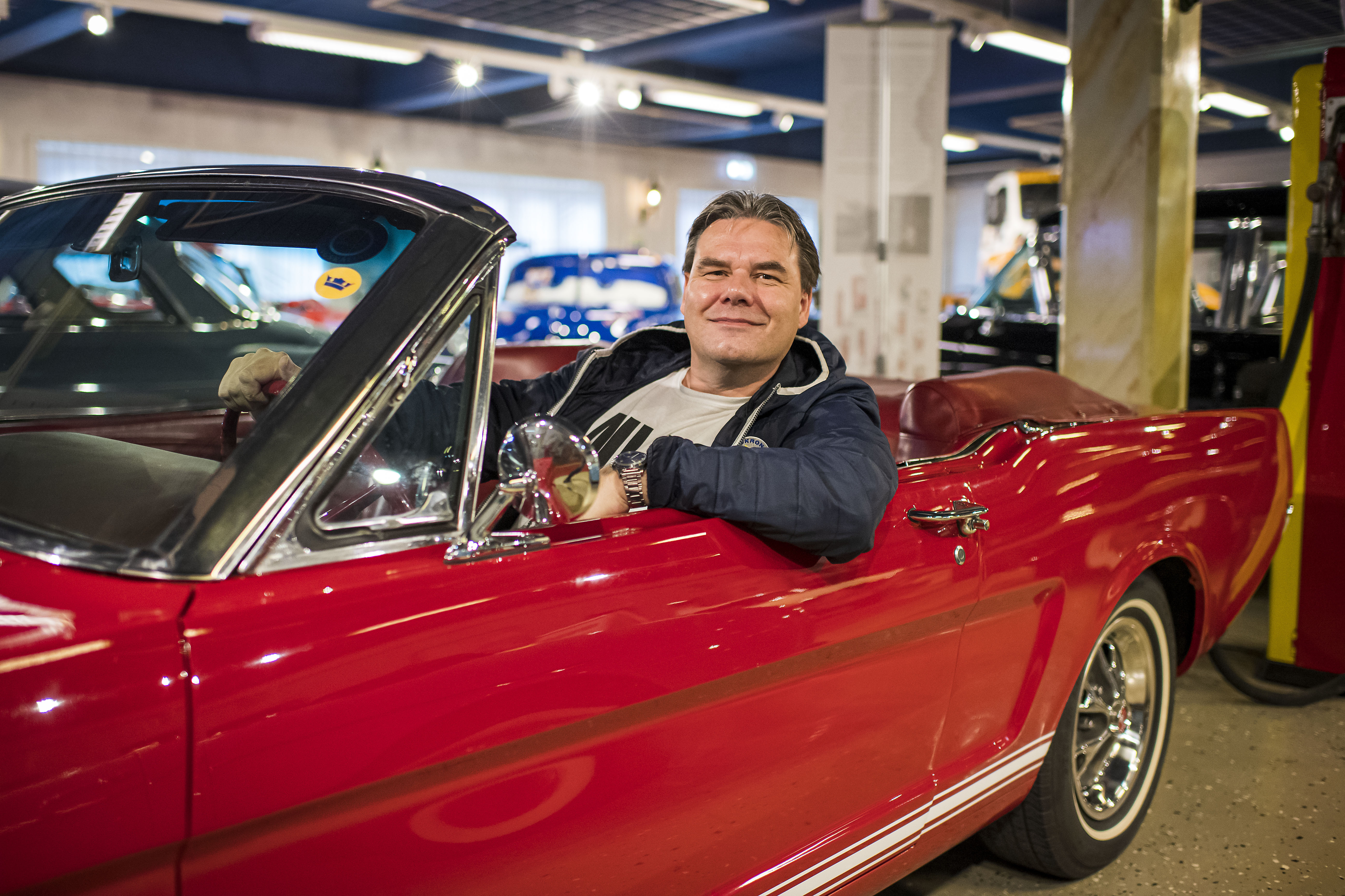 Här ser ni en lycklig man. Idag fick jag tillfälle att som Affärsliv Blekinges redaktör besöka motorförlaget Albinsson & Sjöbergs läckra bilmuseum i Karlskrona. Naturligtvis kunde jag inte motstå att sätta mig bakom ratten i en av de coolaste bilarna som någonsin gjorts. Ända sedan jag var liten kille på 70-talet har jag älskat Ford Mustang. Denna modell är en Ford Mustang Convertible GT 1966 med V8-motor på 200 hästkrafter. Karossen är lackerad i originalkulören Candyapple Red. Tack Stig Sjöberg, museets ägare, för tillåtelse att hoppa in i bilen och tack Sydöstrans fotograf Mattias Mattisson för bilderna!