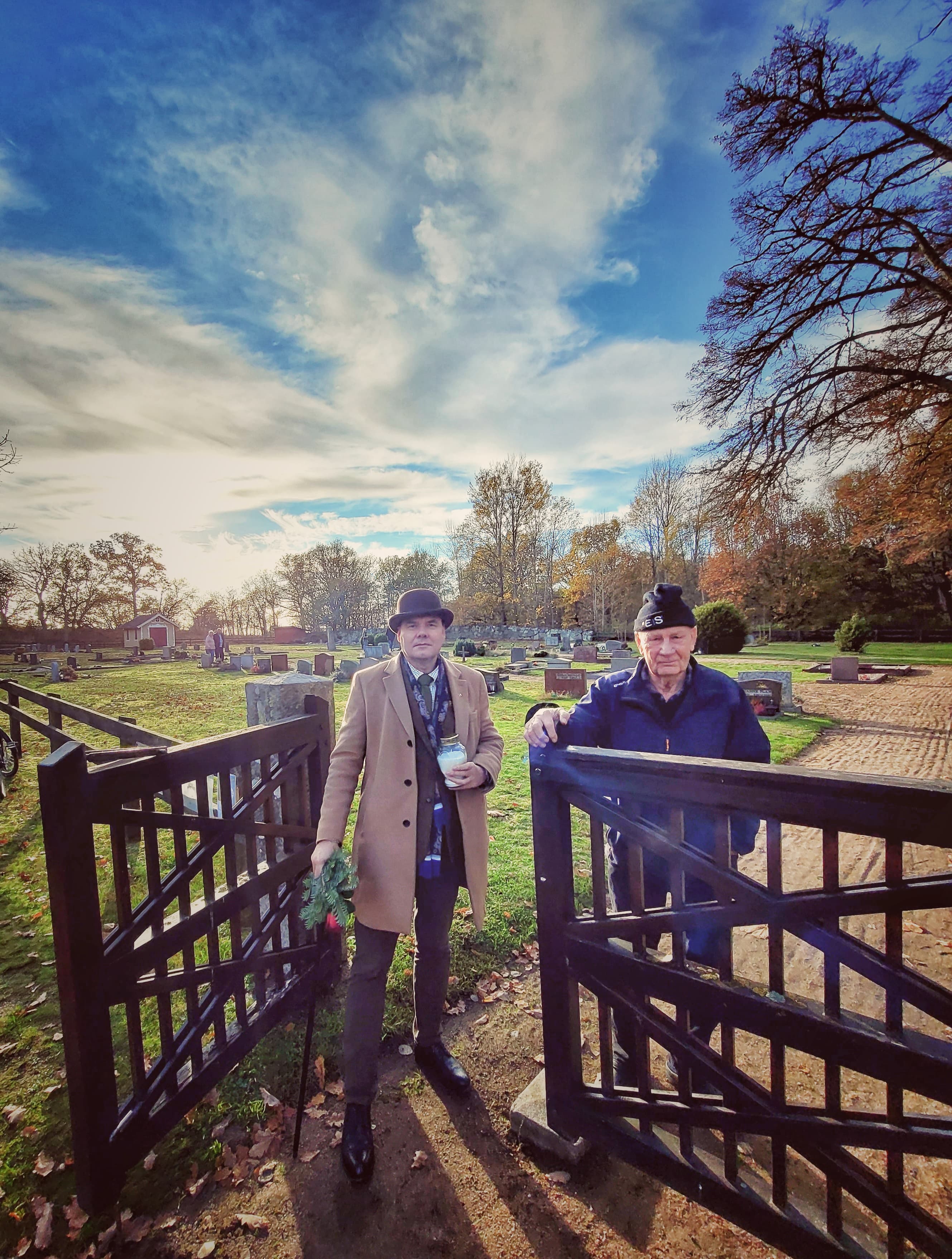 Jag och pappa på Tjurkös stämningsfulla lilla begravningsplats vid Maren. Här vilar världens garanterat bästa mormor Ruth Rosberg, född Ekelund och gammal Tjurköveteran. Med på Allhelgonautflykten denna gång var även finaste Frida. Här stoltserar vi framför Tjurkö kyrka, nyrenoverad och äntligen färdig för att återinvigas med en festgudstjänst söndagen den 13 november, kl 15. Det gläder till och med en inbiten ateist som mig.Som ytterligare en härlig bonus hakade Fridas pappa Bengt Askevik på. Här står vi hela kvartetten samlade nere vid Herrgårdsviken på Tjurkö där mormor hade en stuga. Åter från Tjurkö besökte vi som brukligt Wämö kyrkogård och hedrade mamma Inger liksom det övriga sköna Långögänget. En kontemplerande herre vandrar hemåt. Älskade mor och mormor. Jag saknar er så.