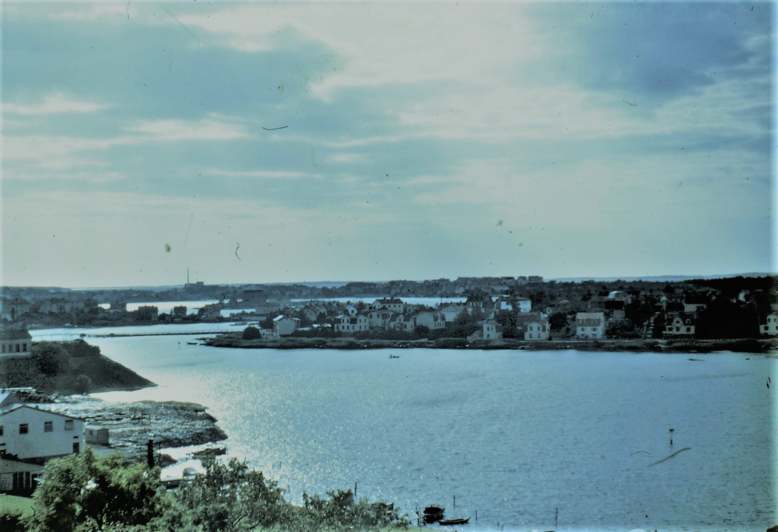 Vår gamle vän Paavo Johannes Lindquist har ånyo varit ute och plåtat. Vid det här tillfället har han stått på Galgamarken och fångat en vy av södra Långö kring 1950. Märk den pålade gångbron till vänster i bild som provisoriskt ersatte den första Långöbron.