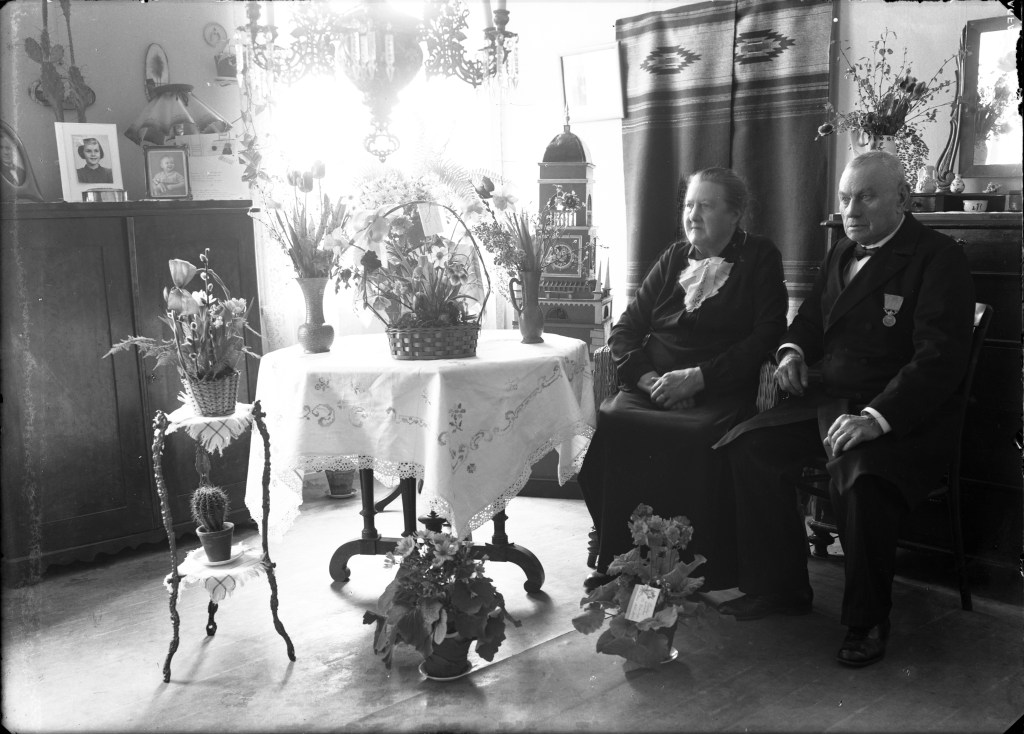 Nu är det 1945. Vi är hemma hos Långöparet John och Matilda Andersson på Östra Strandgatan 11. De är finklädda, John har medalj på kavajbröstet och Matilda har beställt fotografiet vi beskådar av porträttfotografen Elida Wörsell (som sedan 1939 drev egen ateljé, Sundströms Eftr, på Norra Smedjegatan 8 i Karlskrona). Blomstergratulationer har anlänt, men vad som firas saknar jag information om.