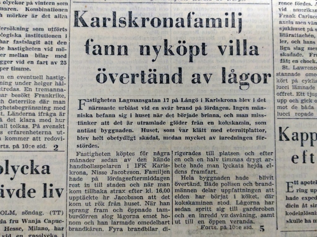 Eldsvåda på Lagmansgatan 17! Ur BLT måndagen den 21 november 1960. Samma hus nu. Fräschare än då.