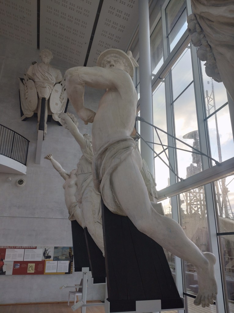 Här står vi samlade i Galjonshallen kring den gamla monsterfavoriten Medusa, del av amiralitetsbildhuggargeniet Johan Törnströms magnifika galjonsfigur Perseus som en gång prydde det 60-kanonsbestyckade linjeskeppet Försiktigheten (sjösatt 1784).