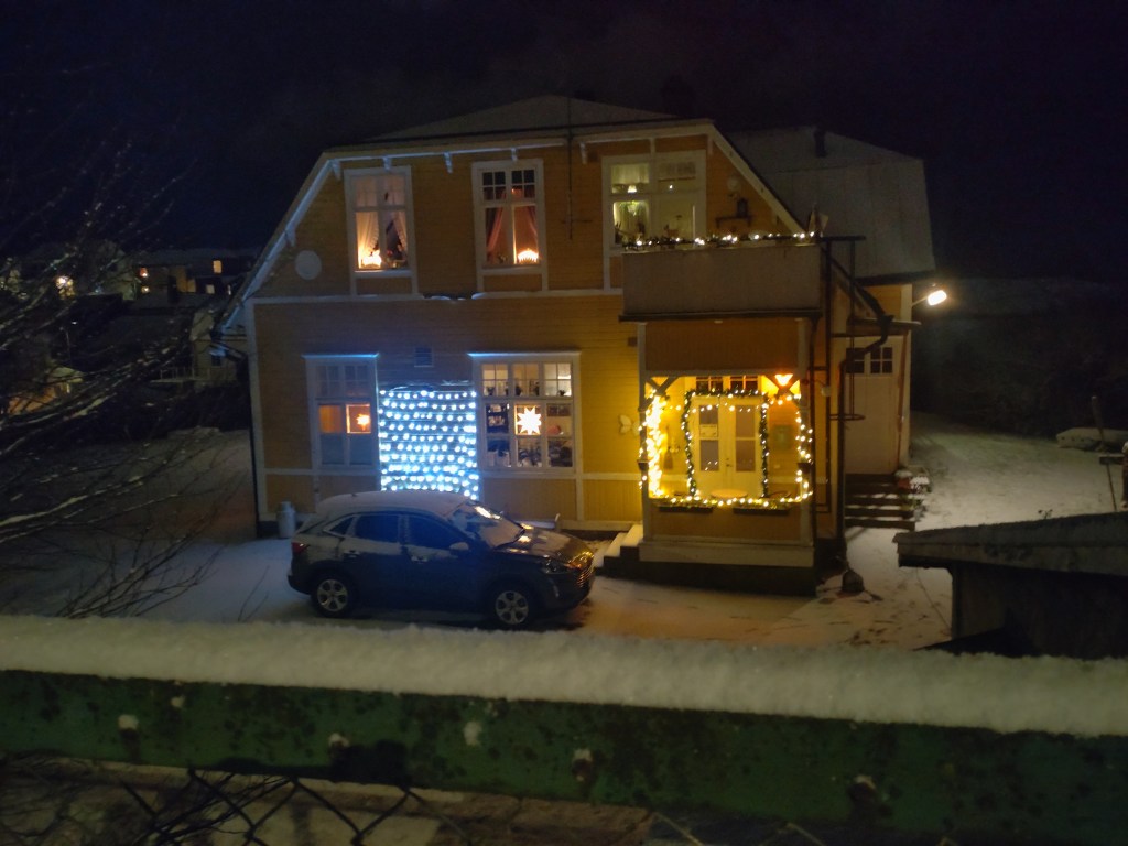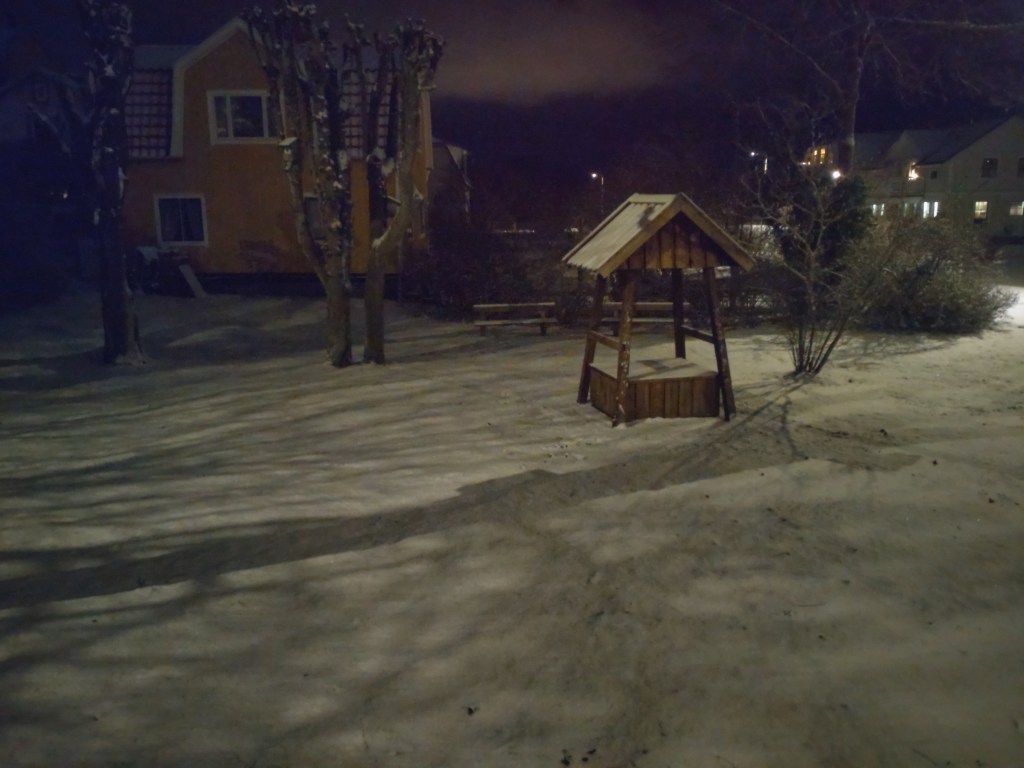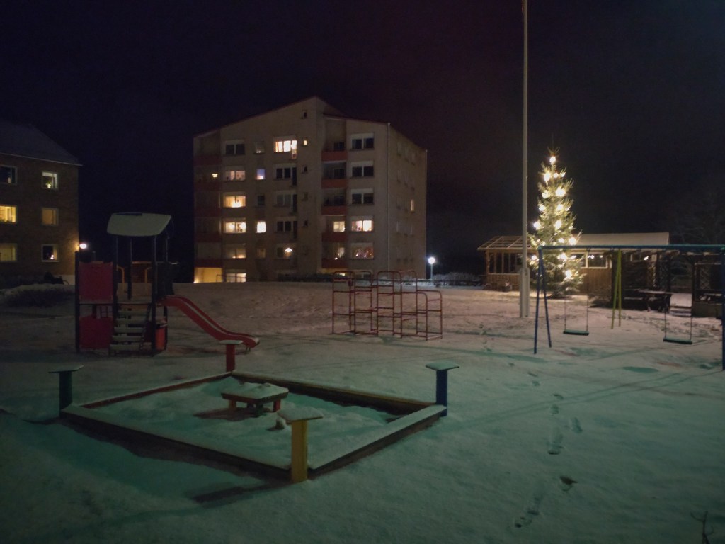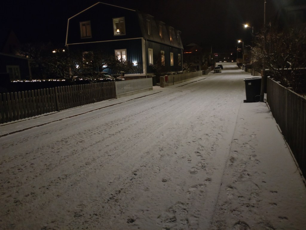 Skuggspel vid Pantarholmskajen. Nu har snön äntligen kommit till ön och isen börjar lägga sig.Muraregatan.Min mammas barndomshem vid Mimerslunden.Gamla Långöskolan.Lagmansgatan. Vår gård på Arkitektgatan med julgranen tajmad på plats.