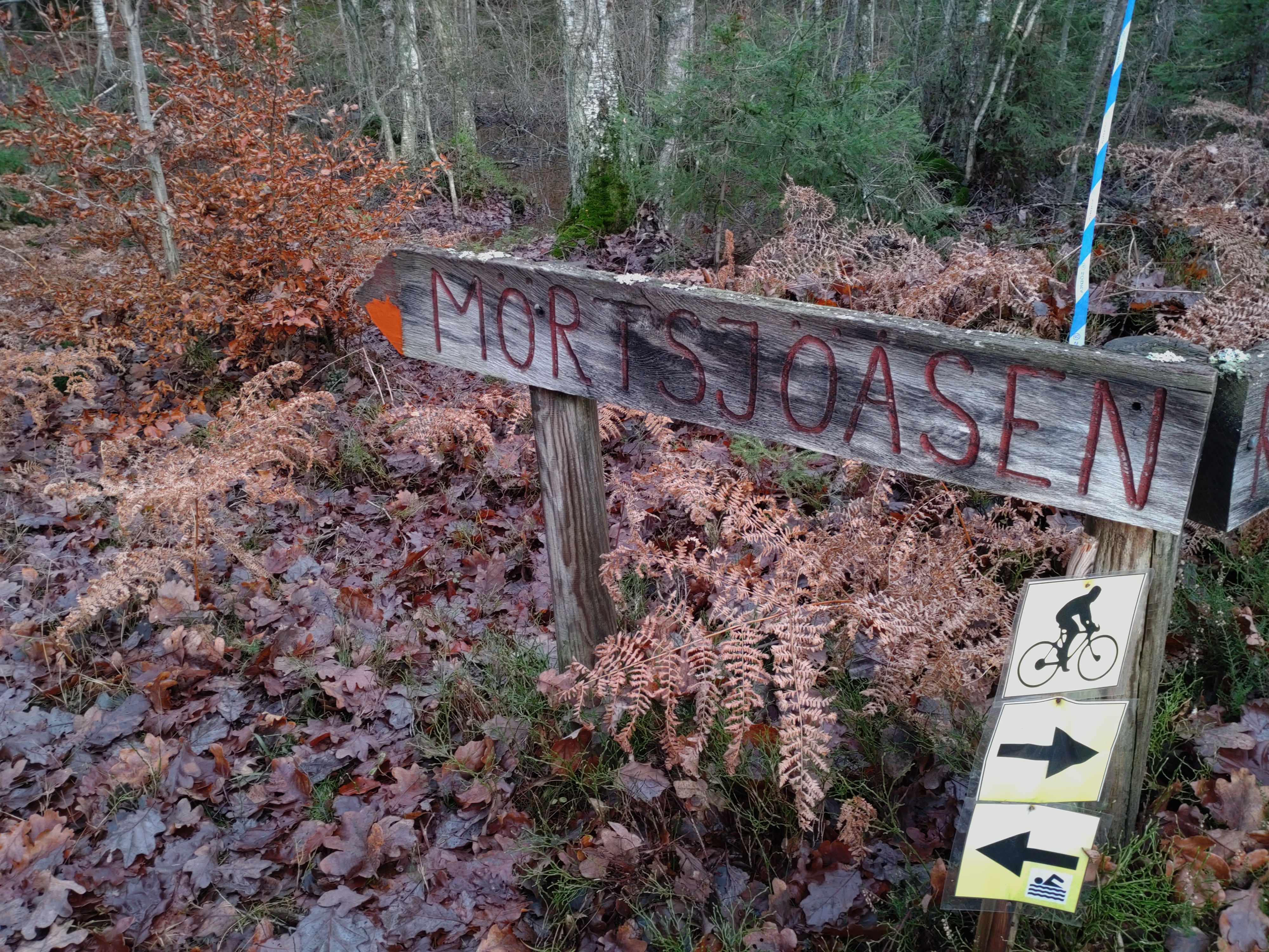 ”Vandra, känna vidden av livet och glädjas åt tron att runt nästa hörn av vägen ligger Paradiset”, som Olle Hammarlund skrev om tjusningen av att gå. Själv prövade jag idag att vandra leden från Bastasjö till Mörtsjöåsen, en sträcka på 8,5 kilometer. Framme vid Mörtsjöåsen, sommartid ett populärt rekreationsområde. Efter blott en kortare paus – man blir nerkyld ganska fort i sena november så det gäller att hålla ångan uppe – vände jag åter till Bastasjö. Totalt blev det 17 kilometer och fyra uppfriskande timmar i vandringsspåret.