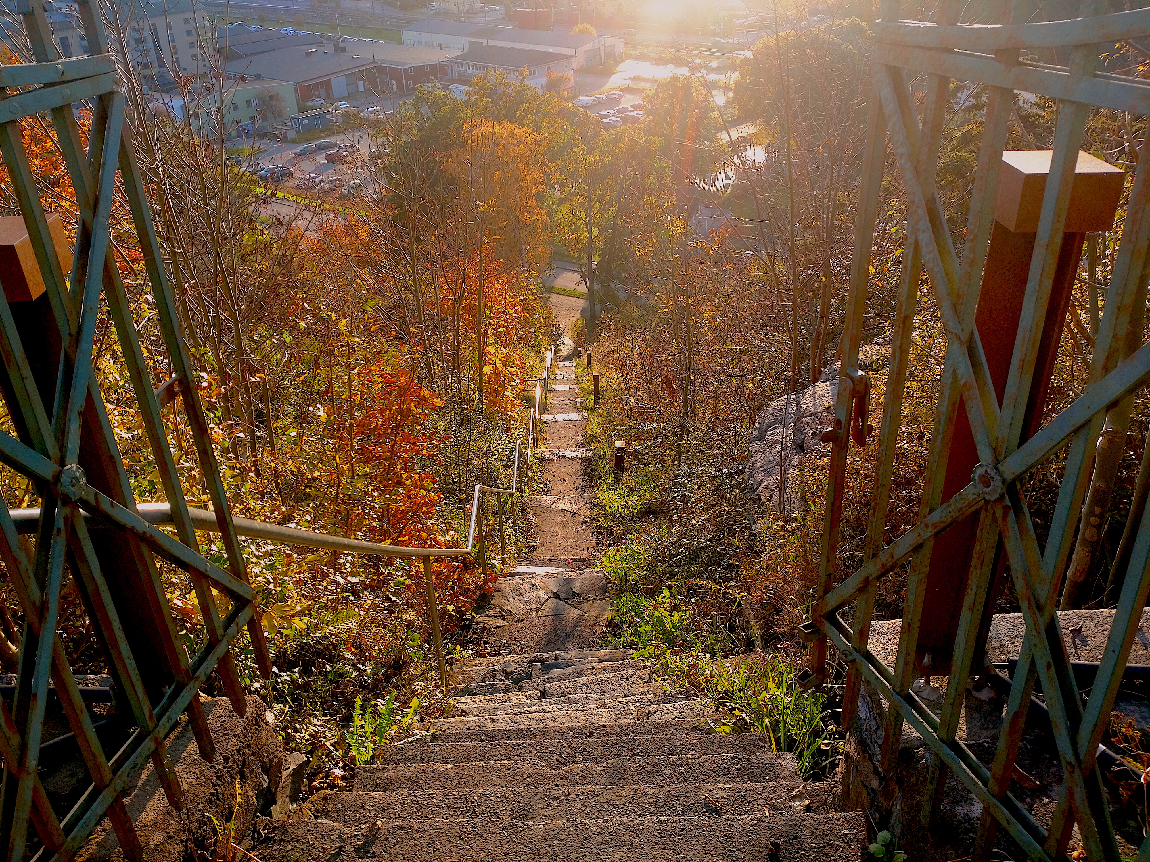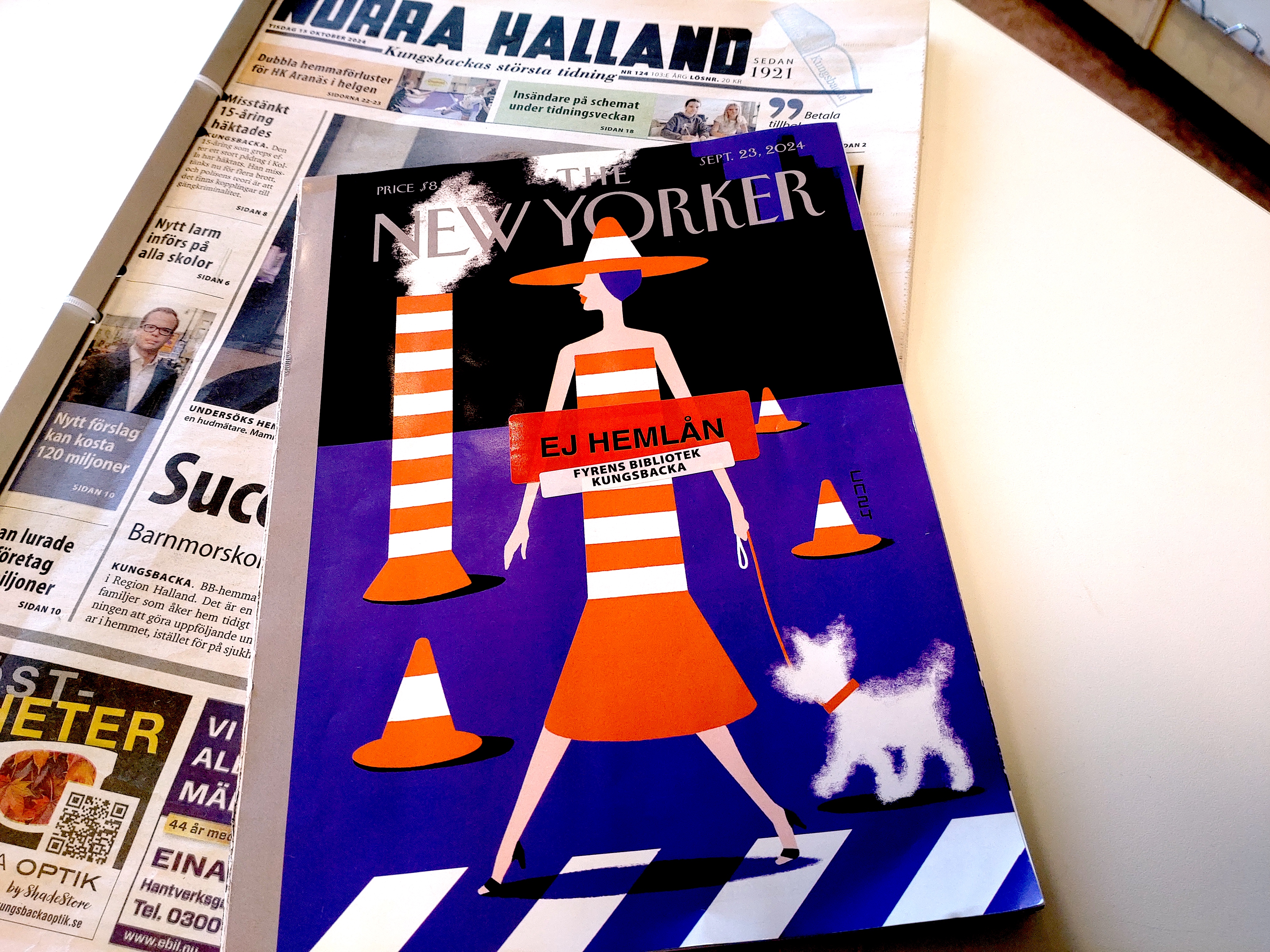Hemma några dagar i Kungsbacka. Naturligtvis är det givet att fika en stund på Tullen 8:2 Cafe & Bistro vid Norra Torggatan. Här låg förr mitt stamlokus Kristianssons Kafé, den ständiga mötesplatsen innan mobiltelefoner och sociala medier utarmade umgängeslivet. Kristianssons skattade tyvärr åt förgängelsen när den Medinska fastigheten (”Gamla Gästis” i folkmun) förvandlades till aska i en storbrand hösten 2006.Näckrosdammen i Kungsbackaskogen. Det må regna, men vad gör det? Kontemplerar en stund under trädens rogivande grenar vid Bissmarkstenen (rest till minne av färgmästare F G Bissmark som tog initiativet till att plantera Kungsbackaskogen på 1860-talet – bara så att genrationer av skolbarn som i likhet med mig fick tillbringa ett oändligt antal gymnastiktimmar och friluftsdagar här vet vem de har att tacka).Järnvägsgatan där jag växte upp på 70- och 80-talet. Mitt kära barndomshem är det gröna huset till vänster. Tvärs över bodde paret Georg och Vera Thomsen. Georg, allmänt kallad Jojje, var en härlig herre från Danmark som hade en antikaffär i sin källare. I vår egen källare hade det tidigare bedrivits ett skrädderi. Det stod gamla symaskiner och annat kvar när vi flyttade in i mitten av 70-talet. Då var huset tämligen risigt, men min genialiskt händiga pappa renoverade upp hela rasket i tipp-topp skick.Vattentornet, anno 1897, på Tölöberg.Det är många trappor upp hit, men helt klart värt mödan. Utsikten är anslående. Nu är jag nere i innerstaden igen och promenerar längs Sjöallén. På andra sidan vattnet ligger Hamntorget, där det idag är parkeringsplats men på min tid brukade området vara fullt av uppdragna fritidsbåtar istället för bilar. Alléskolan, där jag gick i låg- och mellanstadiet åren 1976-82. Numera är skolan sedan länge stängd och kommer troligen att rivas vad det lider efter att bland annat huserat en flyktingförläggning. Stilla flyter Kungsbackaån.Så skönt att vara i härliga Halland ett tag!Man förstår att det är klass på stan när biblioteket ser det som självklart att ha The New Yorker i tidningshyllan.Kärlek.Fakta för vetgiriga: detta är Sveriges första Willys Cash-butik. Den ligger i Tölö och startades 1986 i vad som då var ett nedlagt Falconbryggeri. Mannen bakom verket hette Willy Schleeh (1932-2013) som tidigare drivit Kungsmässans Matmarknad med den äran.Jajamen!