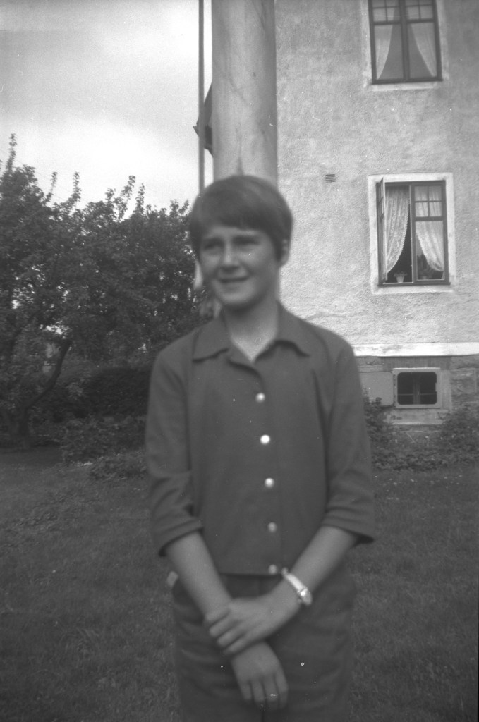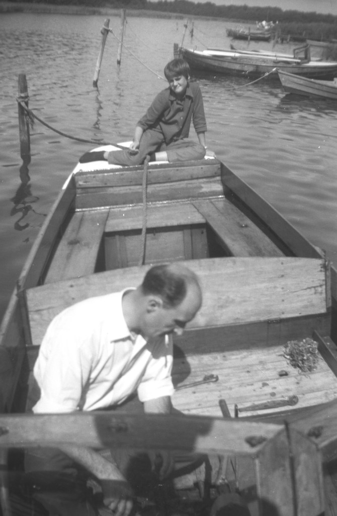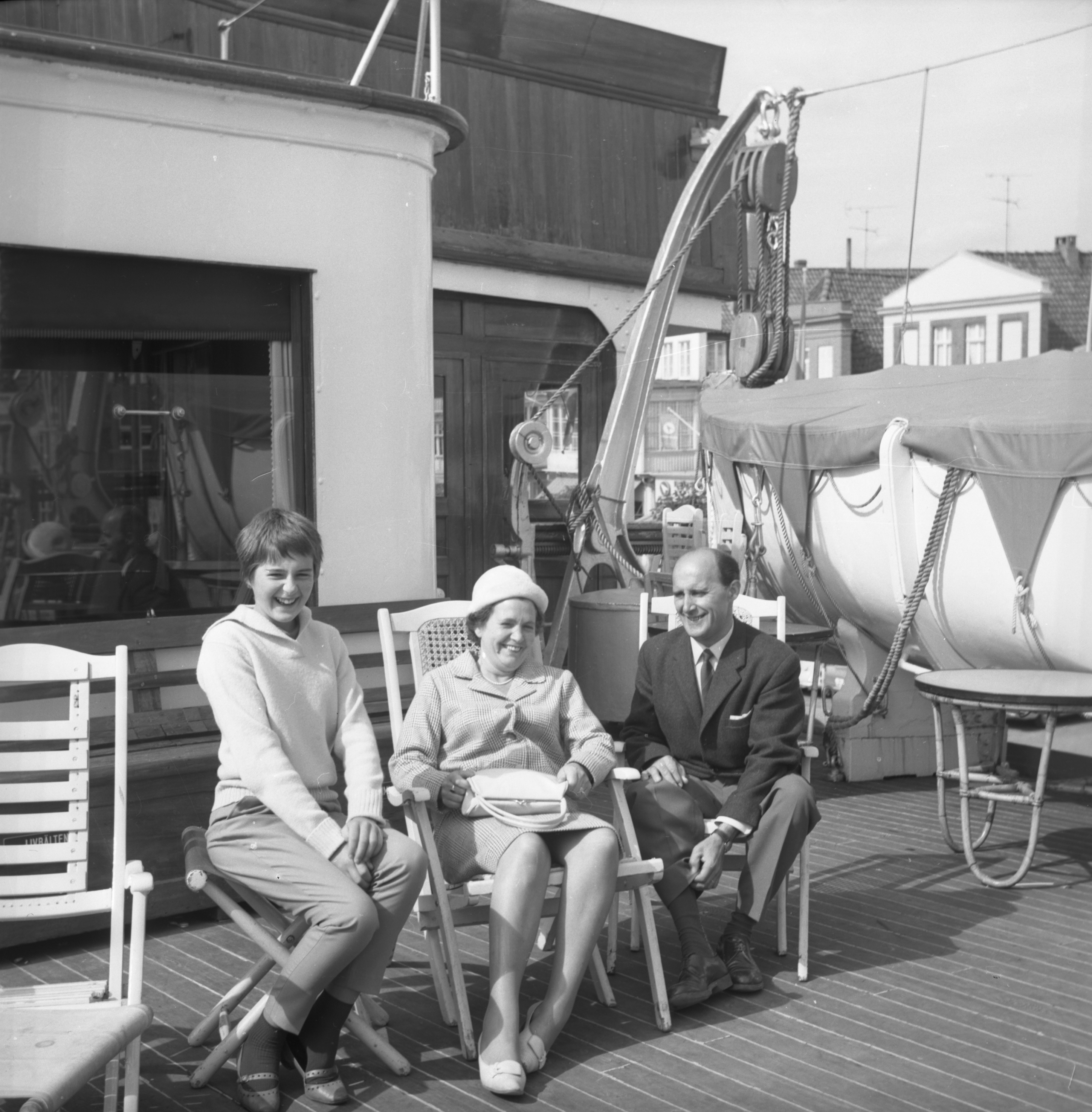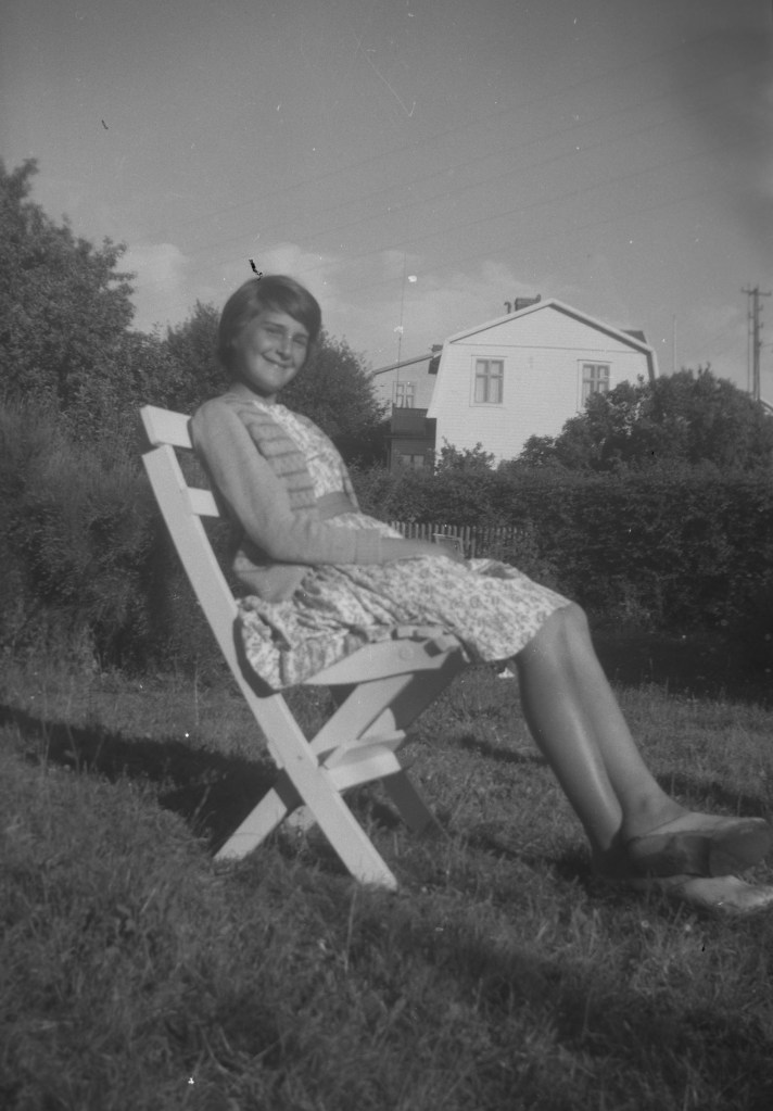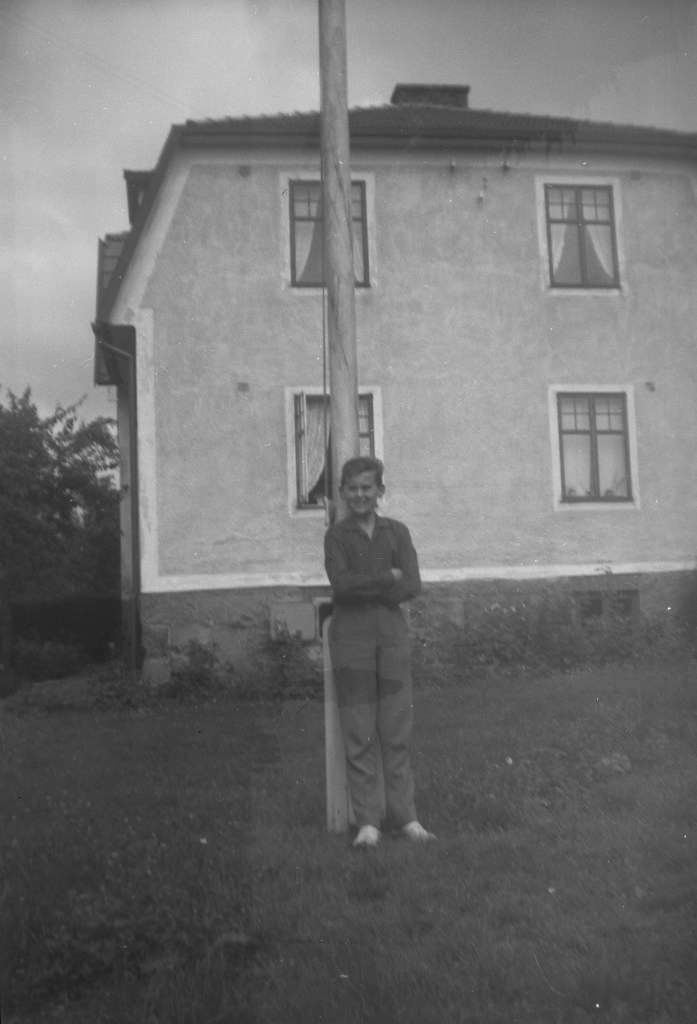 En sommardag i slutet av 1950-talet. Vi befinner oss i Kålösundet och hälsar på båtägaren Thure Hansson och hans dotter Inger som sitter i aktern. Här ser vi den flitige Thure Hansson i hantverkartagen vid sitt hus på Lagmansgatan 14.Dottern Inger kopplar charmfullt av hemma i trädgården.Inger Hansson vid flaggstången utanför familjens bostad. Hon föddes 1949 som den yngsta av paret Thure och Britt Hanssons två barn, senare kom Inger att bli gift Sennerlin.Här är äldsta barnet, sonen Hans Hansson, född 1947. Han var tidigt mycket fotointresserad och har tagit de flesta bilder som vi kan njuta av i detta avsnitt av vår utflykt bakåt i Långös historia.Exempelvis denna härliga semesterbild från en båtresa i sextiotalets början. Från vänster Inger, Britt Hansson (1918-1991) och Thure Hansson (1916-2004).Hans har också tagit detta fina 60-talsfoto från Lagmansgatans busshållplats som då låg precis utanför Långöskolan. Thure verkar ta farväl av en ung man som med packade väskor ska bege sig ut i världen, tyvärr saknas uppgift om vem han är (den som vet, hör av dig!). Observera hur välklädda de bägge är, folk förr begrep vikten av elegans!Stilstudie av Thure under en fasadrenovering på Lagmansgatan 14. Huset byggdes 1923. Familjen Hansson flyttade in 1957 efter att tidigare bott på Kronobergsgatan 10 i Bergåsa. Thure Hansson var först yrkesverksam på gasverket i Karlskrona, men började senare arbeta på stadens elverk. Britt Hansson sydde damunderkläder åt företaget Fortuna i Lyckeby och jobbade ofta hemifrån.En vintrig 60-talsvy från familjen Hanssons Långöträdgård.Britt och sonen Hans tar en svängom vid ett festligt tillfälle 1969.Nu har det blivit sommaren 1983 och barnbarnen samlas på Lagmansgatan 14 för ett kärt besök. Från vänster ser vi minstingen Carl Otto Hansson (son till Hans) i famnen på Lillan Sennerlin (senare gift Berglund, dotter till Inger), bredvid henne sitter Ola Hansson (son till Hans) och överst på trappan Ulf Sennerlin (son till Inger) samt Linda Hansson (senare gift Oljons, dotter till Hans).Den nya generationen på saftkalas i Långöträdgården två somrar innan, 1981. Från vänster: Ulf, Ola, Lillan med Linda i knäet. Thure och Britt Hansson sommaren 1991, då de också sålde sitt hus och en Långöepok var över. Varmt tack till dottersonen Ulf Sennerlin som öppnade familjealbumet och generöst ställde dessa foton till förfogande.Familjen Hanssons tidigare residens på Lagmansgatan 14 idag.