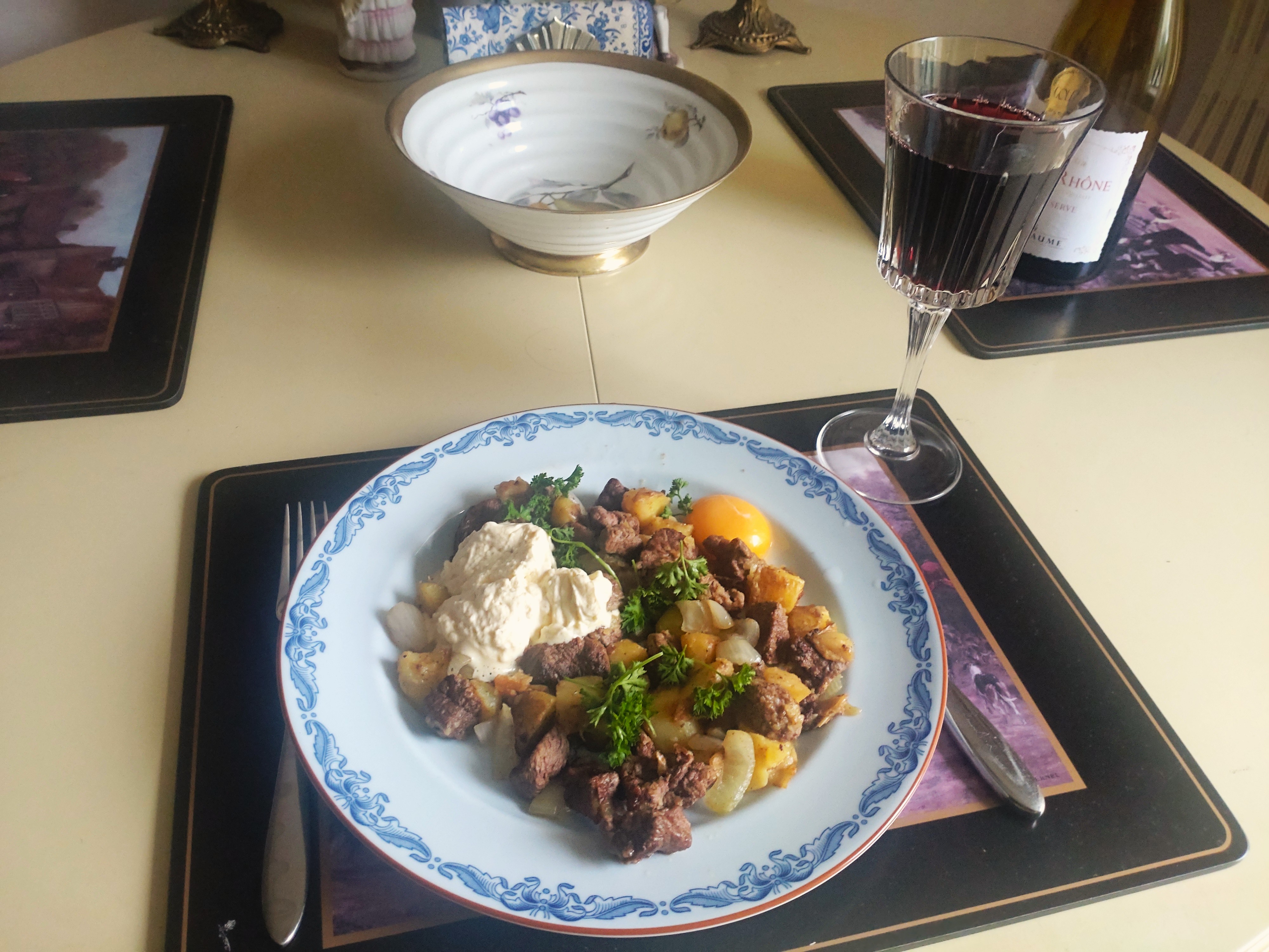 Jag kommer hem till Långö över helgen och välkomnas innanför dörren av en perfekt Biff à la Rydberg med ett gott rödvin därtill. Himmelskt! Det är min syster, mycket begåvad inom kökskonsten, som haft den stora vänligheten att tillaga och bjuda på denna härliga klassiker i den svenska husmanskostens stolta repertoar.