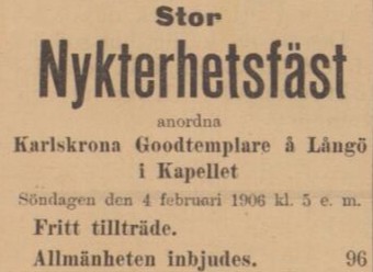 Blekinge Folkblad 1 maj 1905. Vi noterar för övrigt det innovativa greppet att på Arbetarrörelsens stora dag trycka hela den S-märkta tidningen med röd text, även om läsvänligheten blir något lidande.