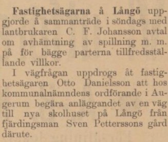 I samma nummer av Blekinge Folkblad (31/7 1906) rapporteras om mer jordnära ting på Långö.