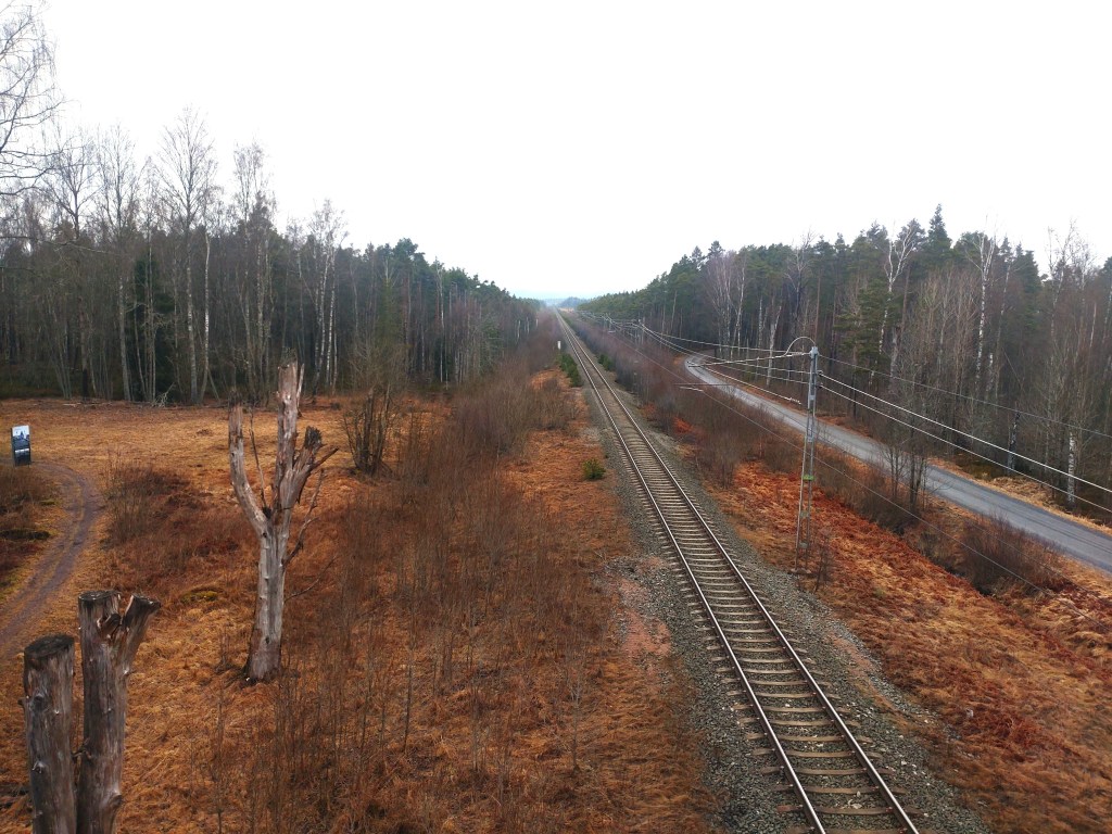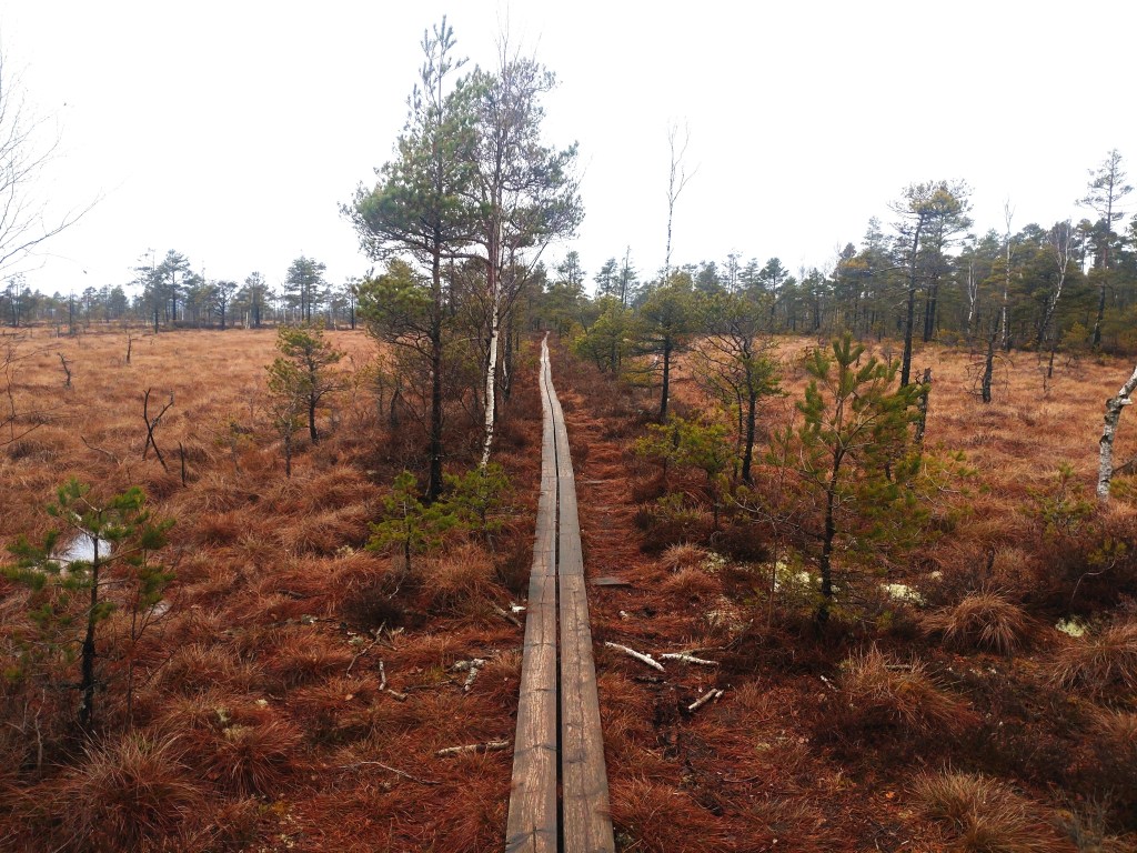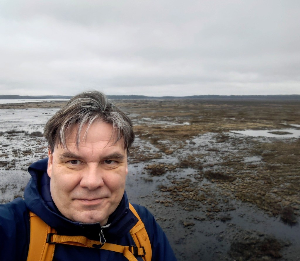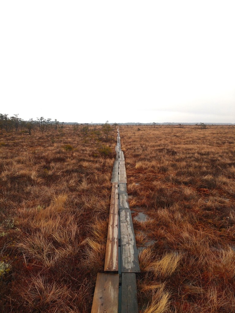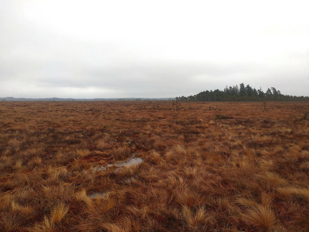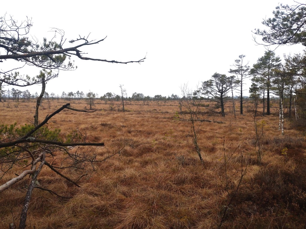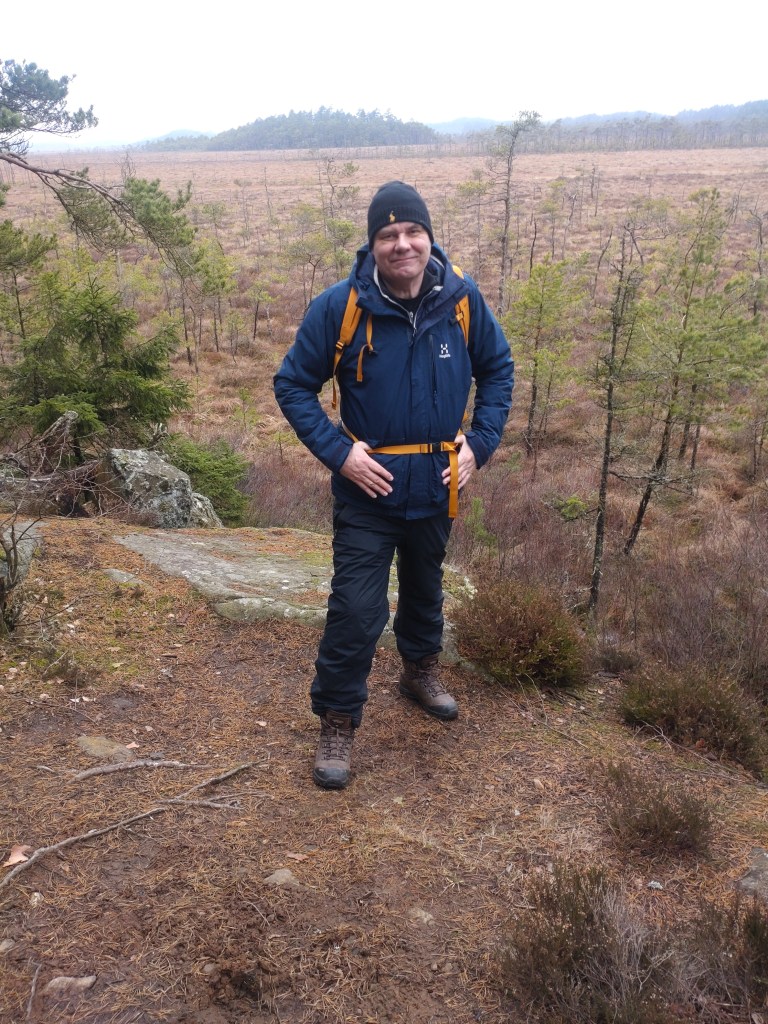 Vandringspremiär i nationalparken Store Mosse, beläget en bit utanför Värnamo. Här står jag tolv meter upp i det stora fågeltornet intill Naturum med utsikt över det imponerande gungflyet vid Kävsjön.På gångbron över järnvägen vid Kittlakull som leder till dagens vandringsetapp runt Lilla Lövö (drygt 6 kilometer).Stora Mosse räknas som Sydsveriges största myrmarksområde (totalt 8000 hektar) och landskapet är verkligen en suggestiv upplevelse att vandra igenom.Min arbetskollega och vandringskompanjon Per visar vägen på den blöta, något hala spången. Med fast mark under fötterna på Lilla Lövön.Majestätiska vidder. Jag längtar redan till nästa besök i detta fantastiska småländska myrhav.