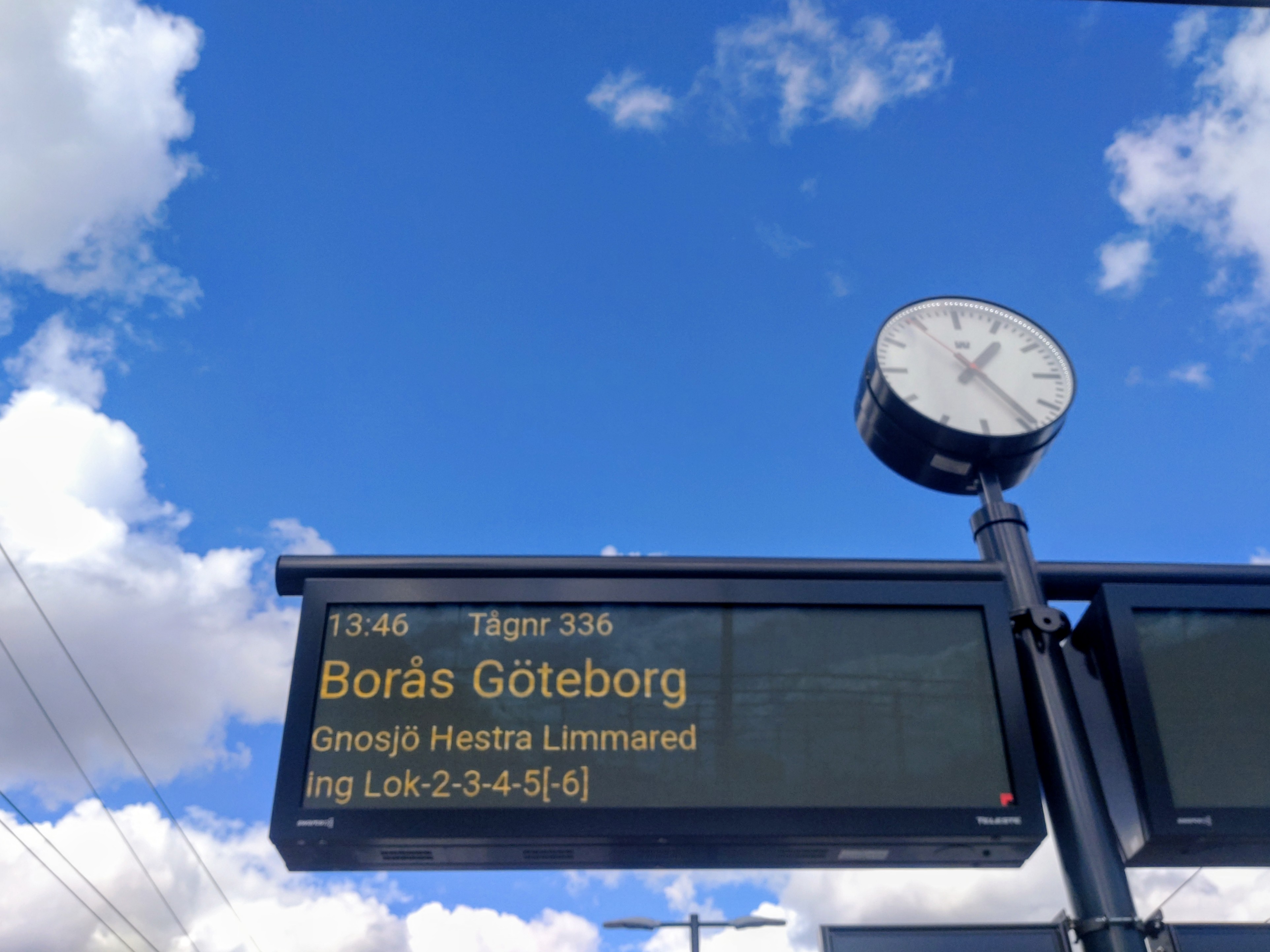 På Värnamo station i förväntansfull väntan på fredagståget mot konungarikets ädlare regioner.Och så var man äntligen hemma i Kungsbacka och den halländska civilisationen igen. Ty var kan man finna en anständig fisksoppa med räkor annat än på västkusten?