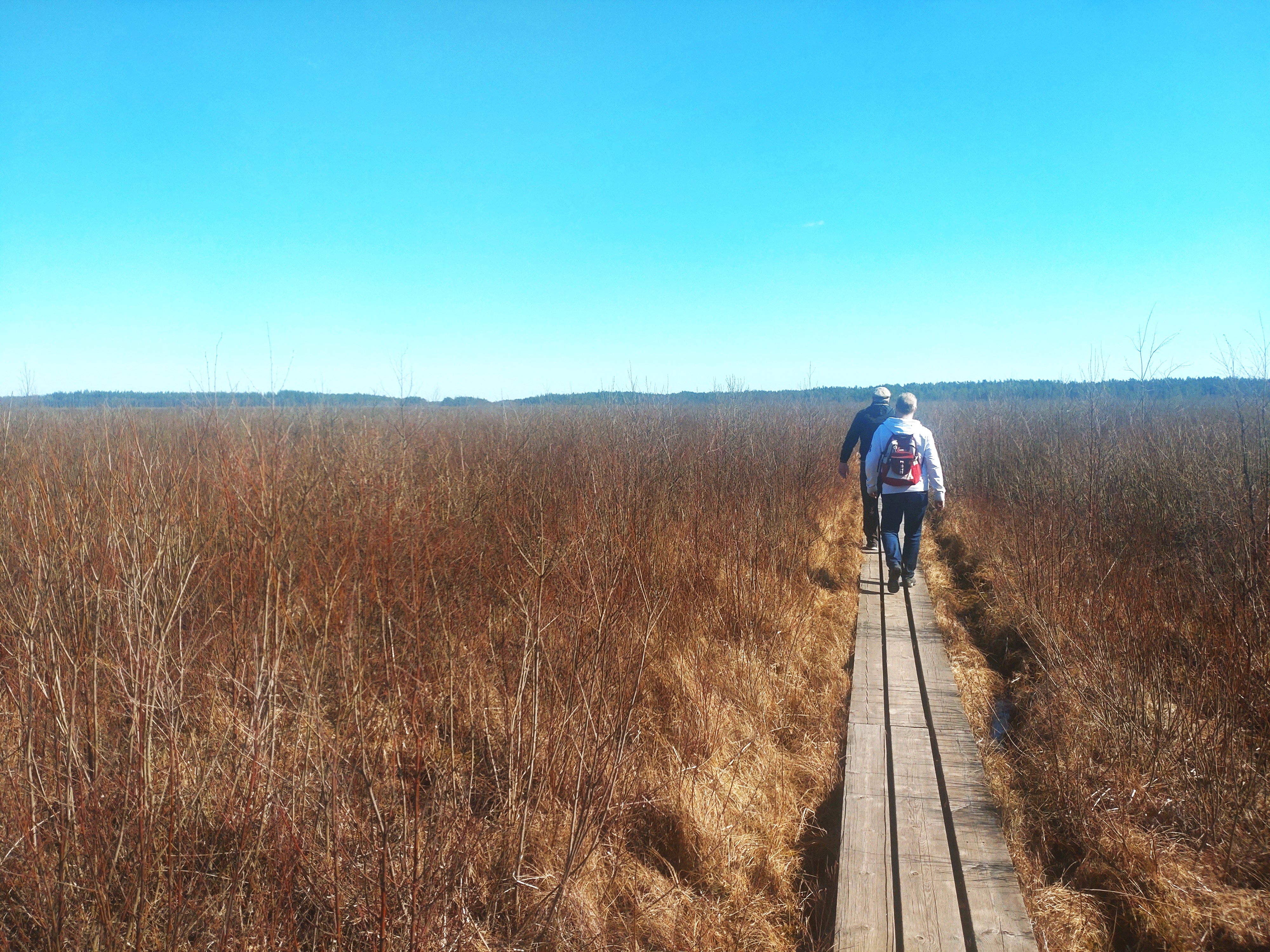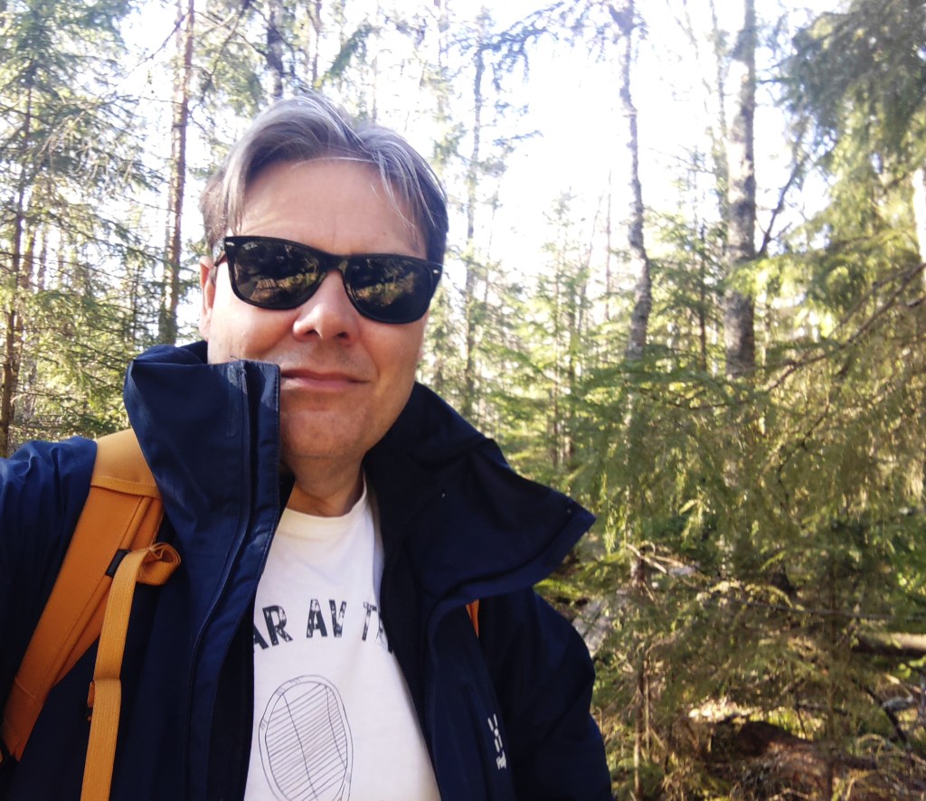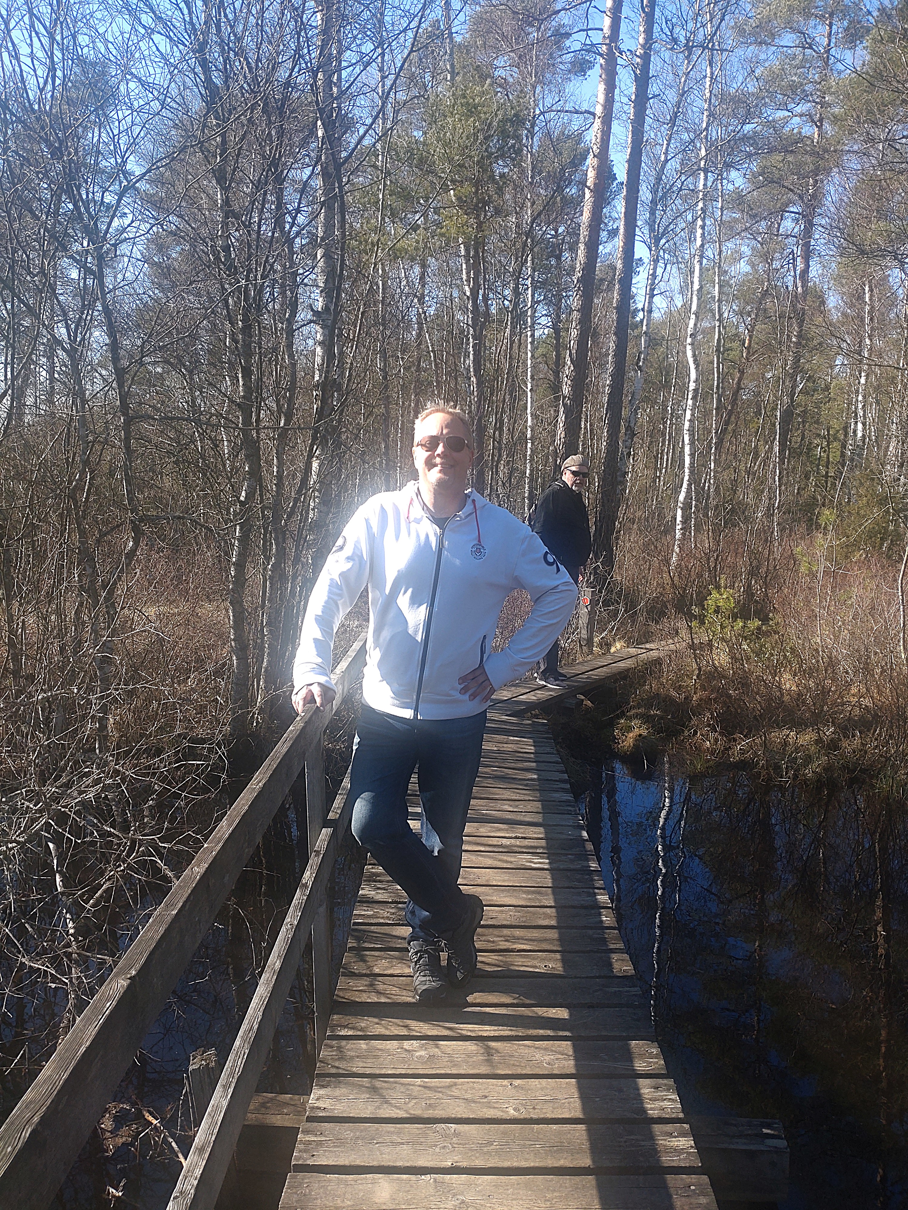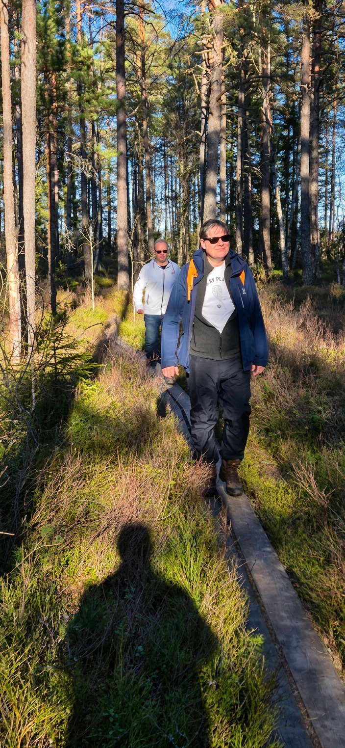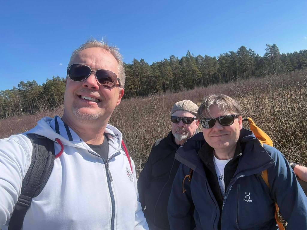 Tre män i Store Mosse nationalpark utanför Värnamo. Tillsammans ska vi (Rob, Per och jag) ut på en liten expedition och vandra Kävsjön runt. Leden är 12 kilometer lång. Naturen är underbar. Vädret är perfekt. Häng med!Målgång. Nu har vi gjort oss förtjänta av ett besök på pizzeria Chaplin inne i stan!