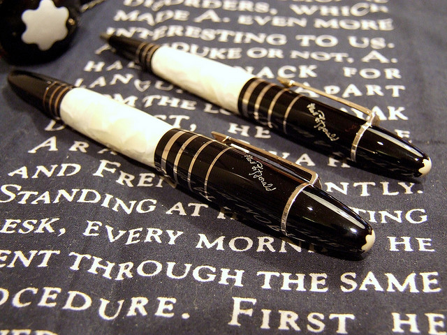 Vill man skriva en roman i stil med The Great Gatsby eller Tender is the Night (och handen på hjärtat: vem vill inte det?) så behövs naturligtvis ordentlig utrustning. Förutom inspiration, talang, uthållighet, en bra story och mästerskap i världsklass då. Men bortsett från såna detaljer, vad kan vara lämpligare att återskapa The Roaring Twenties med än denna speciallyxiga Montblanc som bär F Scott Fitzgeralds signatur? Borde räcka långt, tycker jag. Förhoppningsvis är pennan vattentät också. Ty som F Scott sa: ”All good writing is swimming under water and holding your breath”. Bara att slå till och kasta sig i sjön, alltså.