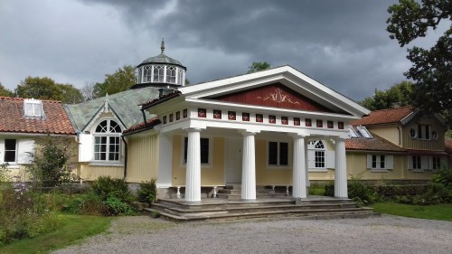 Den var förr om åren fartygssnillet Fredrik Henrik af Chapmans bostad, uppförd av honom på 1700-talet som en ytterst säregen arkitektonisk förening av nordisk allmogestil och antikens klassiska ideal. Det är som en blekingsk ryggåsstuga korsats med ett grekiskt tempel, en lika förbryllande som fascinerande skapelse. Den som är begiven på kulturhistoria har ett unikt resmål att se fram emot.
