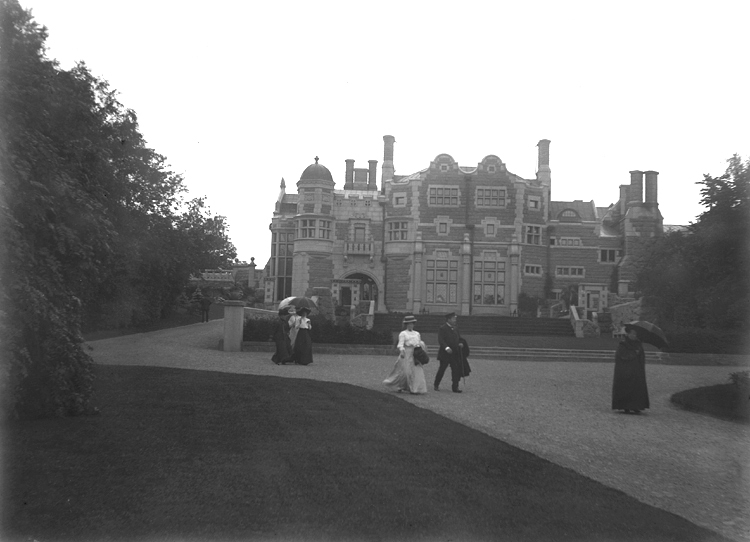 Makarna Dickson ville ha ett mer passande residens, utlyste 1897 en arkitekttävling och resultatet blev att Lars Israel Wahlman (1870-1952) fick förtroendet anlägga det sagoaktiga brittiskinfluerade Tudorpalats som står där idag. Den här bilden är mycket intressant. Uppenbarligen började man bygga det nya slottet 1898 medan det gamla ännu stod kvar.