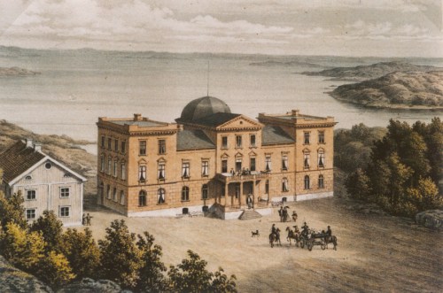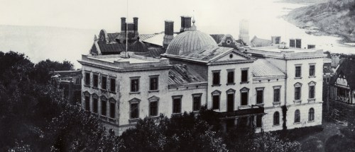 Slottet betraktat från sjösidan före 1898. En i dagens ögon fascinerande kontrafaktisk syn.