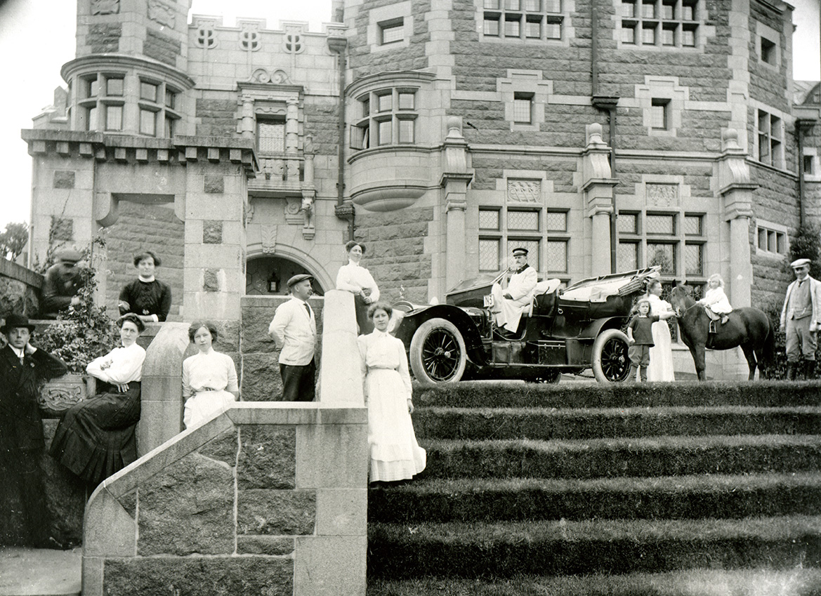 Men nu har Santessons pampiga italienska herrgård definitivt skattat åt förgängelsen. Stolta arbetare visar upp sig framför nya slottet, som tog sex år att bygga och stod inflyttningsklart 1904.