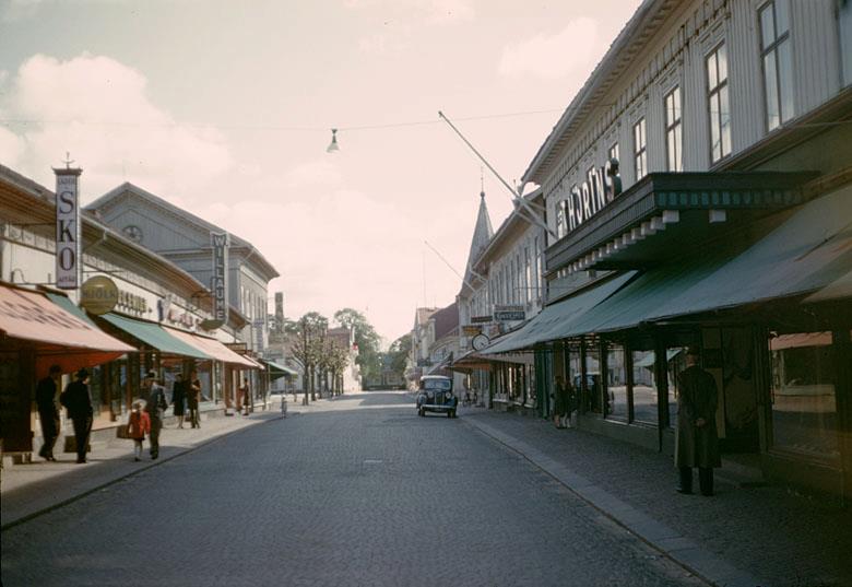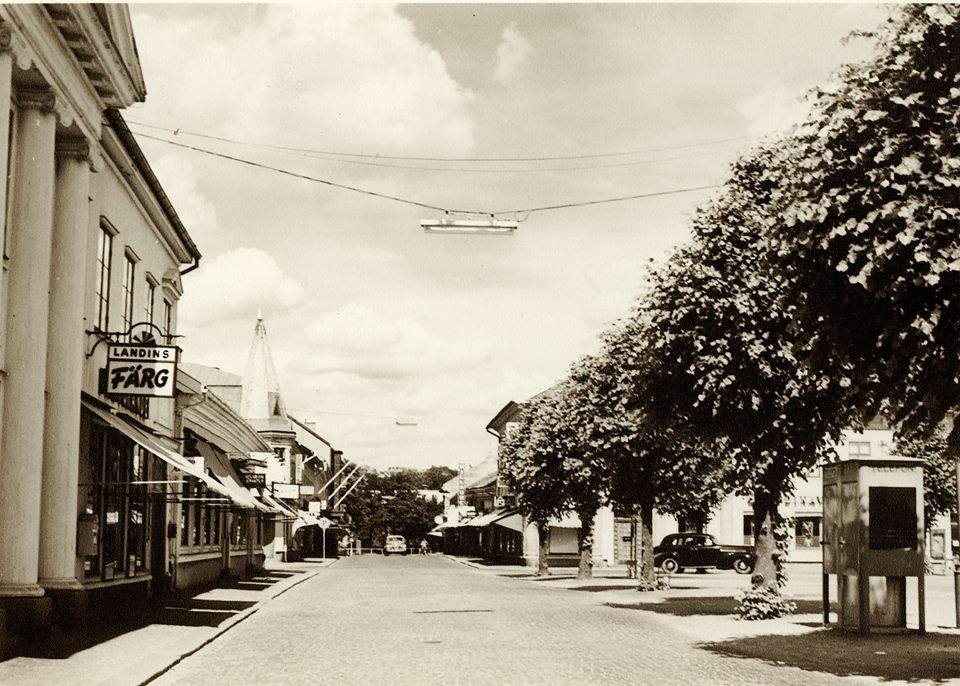 Samma gata i motsatt riktning uppifrån torget sett, sju år senare. Är fotografiet månne taget på en söndag? Var är allt folk?