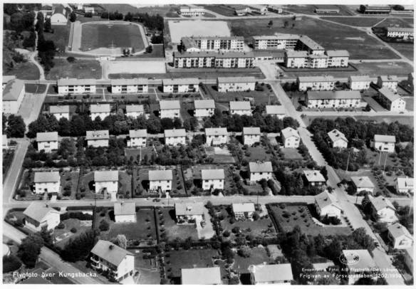 Västra Villastaden 1959. Idrottsplatsen Tingbergsvallen ser vi i övre vänstra hörnet, men överst till höger i bild saknas något för oss nutidsmänniskor välbekant: denna ännu ej byggda Varlaskolan (för övrigt mitt högstadium 1982-85 och som jag upplevde som lite sunkigt i jämförelse med den mycket trevligare Alléskolan).