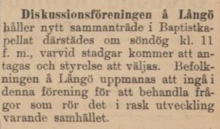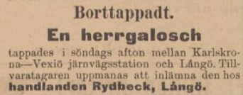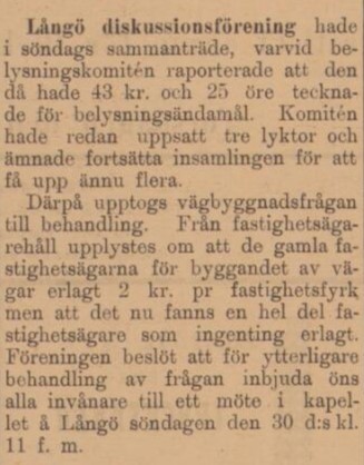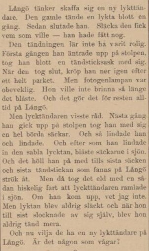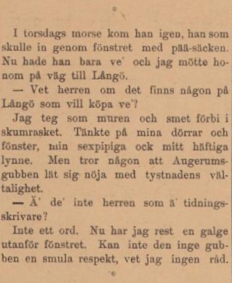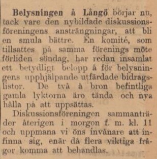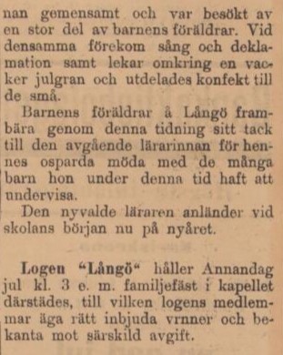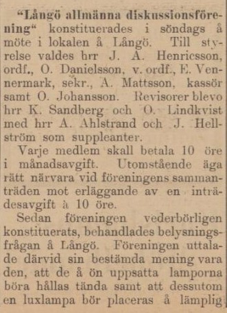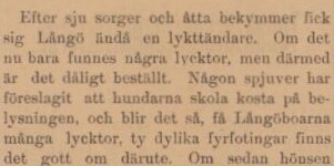 Blekinge Folkblad den 27 december 1906.Vidare i dito nummer (27/12 1906) kåserar J A Henriksson, signaturen ”Lurifax”, under den stående rubriken ”Bakom kulisserna” varur detta Långörelaterade stycke är saxat.