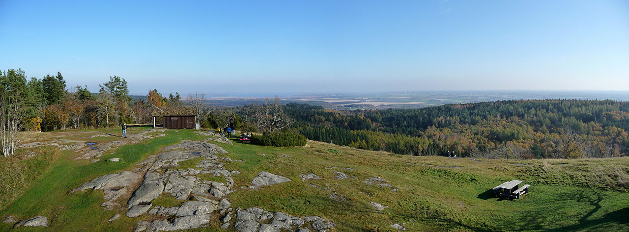 Vy över Omberg. Nu ekopark, förr skövlat av ekologiskt lantbruk.