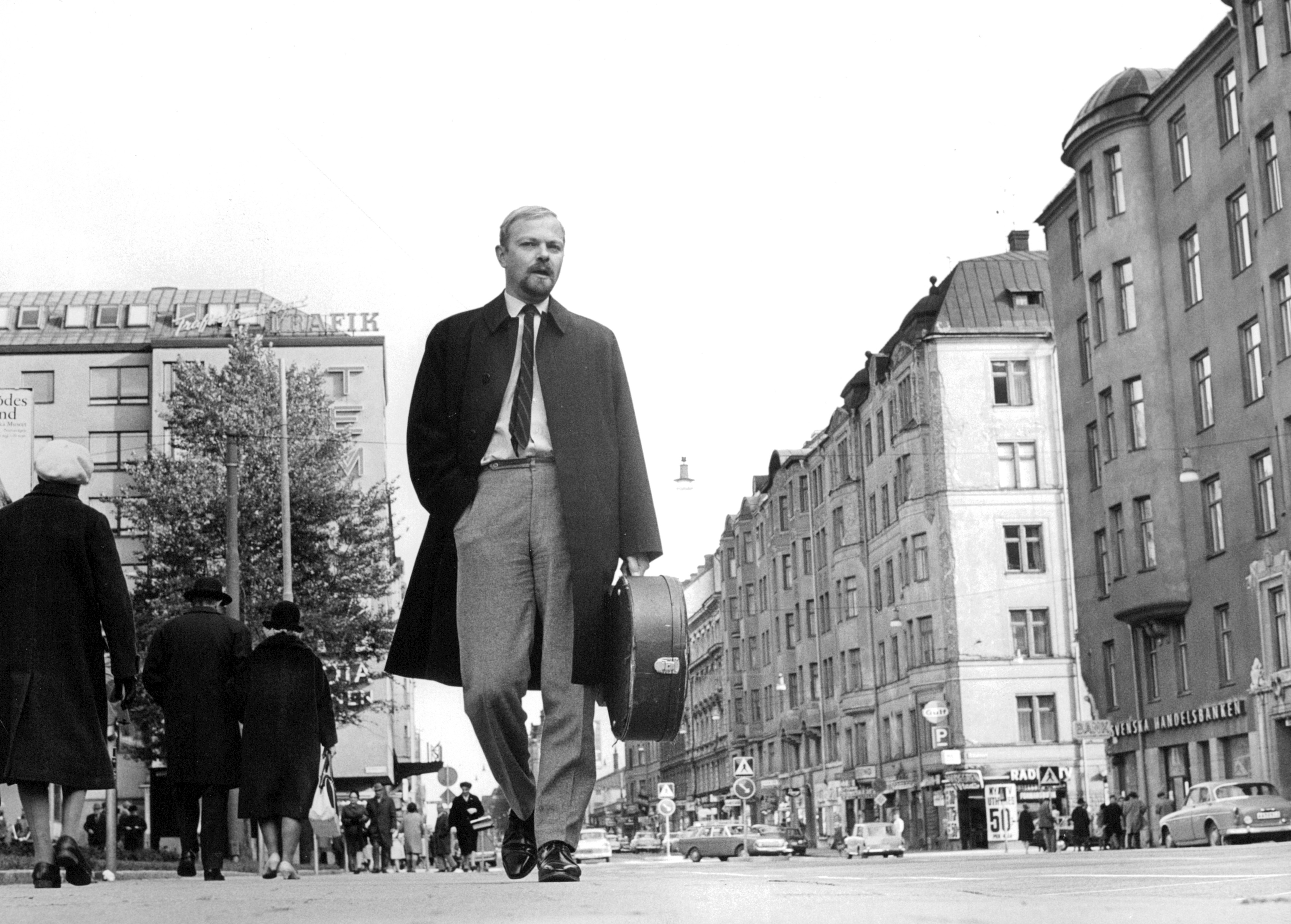 ”Och sen rusar vi in i en mardröm av glas och betong, där sitter vi sen och tycker skjortan är trång!”, sjöng han i Gustav Lindströms visa från början av 60-talet. Det tog skruv. Den socialdemokratiske kommunalpampen Hjalmar Mehr, rivningsraseriets general som lät sin armé av grävskopor tugga sig genom huvudstadens inbodda kvarter, såg mera rött än vanligt och brännmärkte Olle Adolphson som reaktionär kulturfiende.