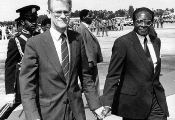 Ändå var det inget tal om att avbryta biståndsflödet. 1989 gjorde statsminister Ingvar Carlsson (S) ett officiellt statsbesök hos Mugabe, höll honom kärvänligt i handen och förkunnade att ”Sverige och Zimbabwe allmänt står nära varandra”. Moralisk kollaps är bara förnamnet.